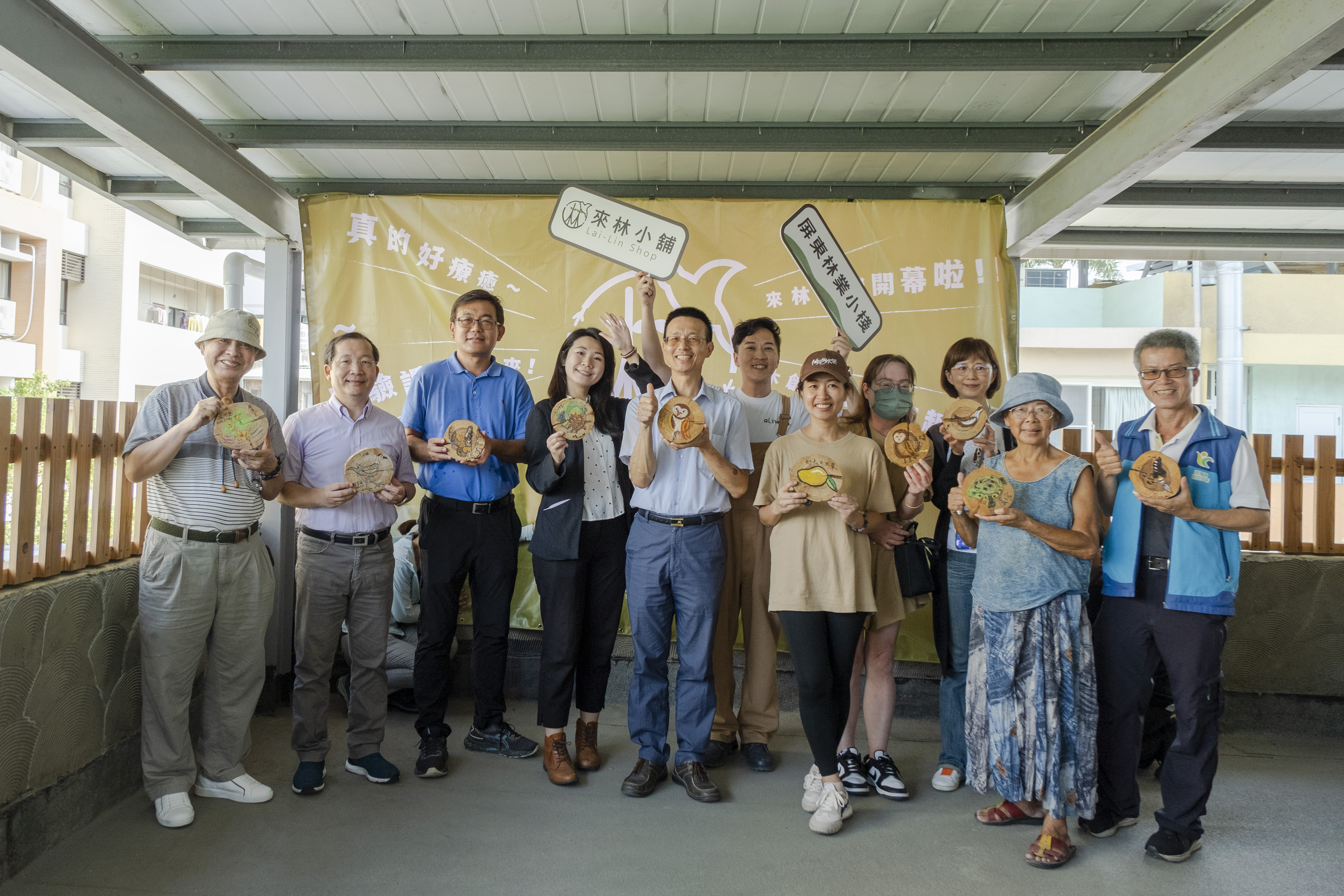 位於屏東市公園路11號,屏東林業服務小棧為了活化舊館舍公用財產,重新標租營運。為更貼切民眾的生活,並將相關林業服務資訊有效傳遞給民眾,2023年5月起設立《來林小舖》山林風格選品店,成為屏東市鬧區另類的林業服務據點。 《來林小舖》打造為「城市通往森林的捷徑」。進入小舖彷彿打開任意門一般,可以聞到天然森林氣味、看見實木錯落、天花板亦有手作藍染布營造的藍天白雲,讓人有一秒離開城市到了山林的感受。 屏東林業服務小棧的《來林小舖》打造成一個優質國產材木創/竹創等選品、及教育學習,具備身心靈放鬆的複合式空間,讓「生態永續」課題進入到每個人的生活之中。 新書介紹 森林裡有什麼?習慣便利生活的孩子們可能不會想到這個問題,甚至對於森林有著刻板印象和恐懼。但森林其實有著許多美好的動植物和故事,等著人類去發掘。 還記得小時候看過的白雪公主故事嗎?白雪公主被追殺進森林裡時,慌張地亂跑和大哭,黑麻麻的森林,似乎有許多眼睛在瞪著她,讓她不知道該怎麼辦,直到她冷靜下來時才發現,這些像在監視的眼睛,其實是小鳥、兔子還有小鹿們,白雪公主也慢慢卸下心防,跟小動物們成為朋友,並得到幫助。 對於自然環境的陌生,導致我們忽略了大自然傳達的訊息和智慧;同時太依賴科技產品,使我們以為世界就在那個小方框裡,不用自己探索。 透過林後四林平地森林園區的裝置藝術所串起的繪本《小森的山林奇幻冒險》,除了凸顯林業保育署在森林園區的管理,越來越重視藝術人文環境生態的互動,更希望每一位走進森林的大朋友、小朋友,都能以開放、友善的心與萬物相處,讓我們跟著小森學習與大自然相處,成為土地的一部分。