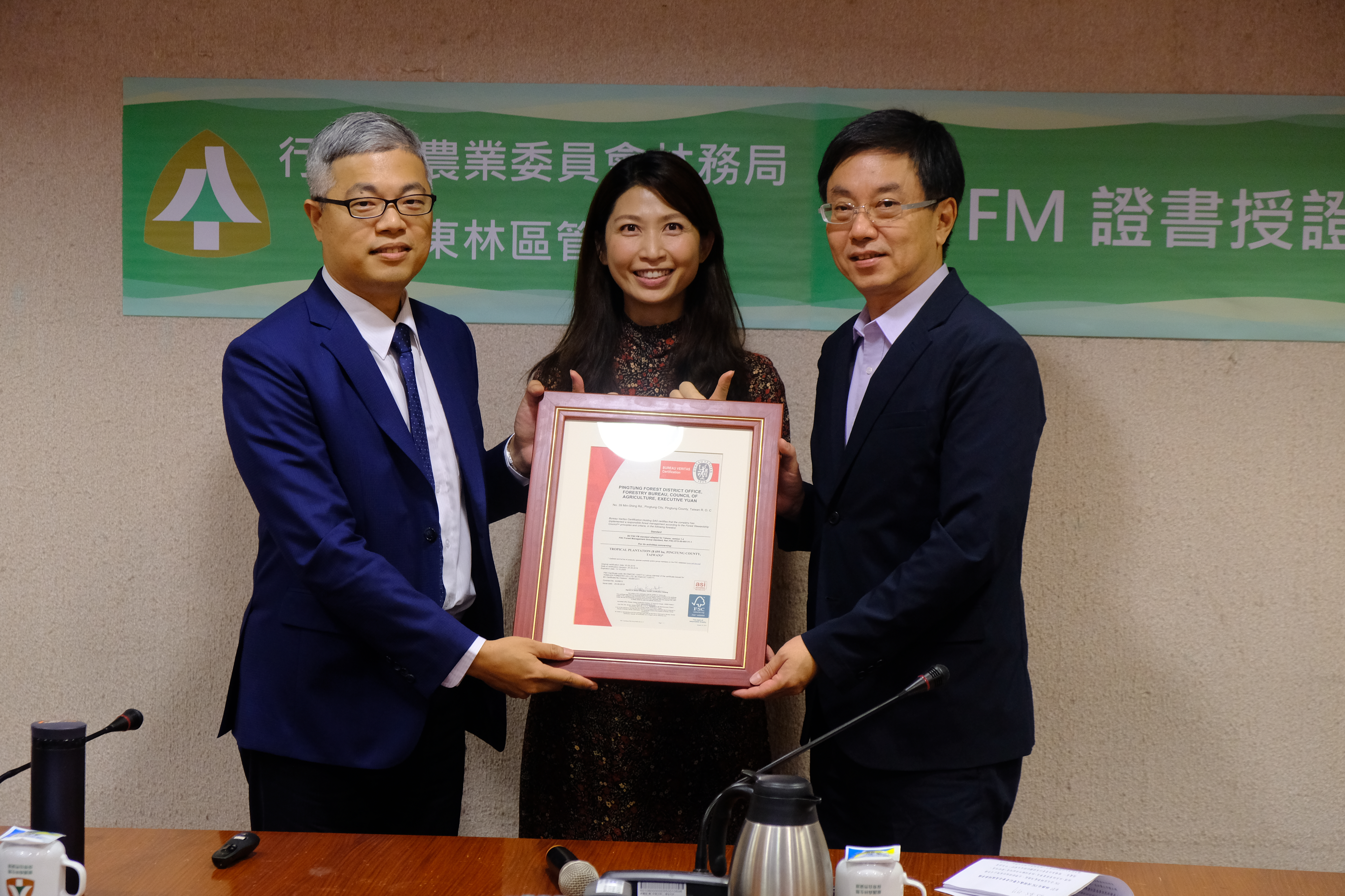 屏東分署於107年上網公開採購委託有限責任屏東縣永在林業生產合作社辦理『環境友善林業專業技術訓練、林地認證暨解說文案建置(含驗證費用)』,經該合作社協辦於108年建置完成「必維森林經營驗證台灣參考標準」驗證所需之各項程序文件,本分署並於108年3月加入成為永在林業股份有限公司森林認證之A成員,及向第3方驗證台灣衛理國際品保驗證股份有限公司Bureau Veritas Certification申請團體驗證,經預審核及主審核通過於108年9月25日取得證書。