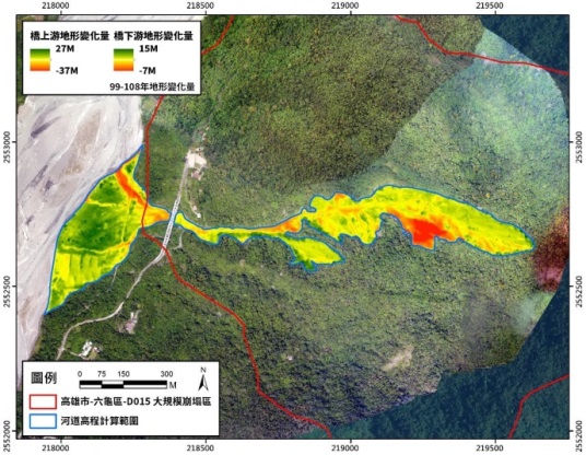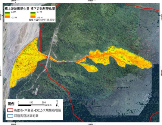 本分署針對轄區內可能發生大規模崩塌之潛勢區依據前期監測報告結論持續進行潛勢區活動性追蹤,同時評估利用GPS近即時觀測資料作為防災預警之可行性。並針對執行大規模崩塌防治工程現況研擬治理建議。 高雄市甲仙區-D044、D047(圓山)潛勢區於本年度遷移GPS監測站至下邊坡鄰近聚落處,並加裝傾斜計作為綜觀之監測與對照,而本區鄰近聚落,有GPS近即時監測之防災預警需求,經測試雖更換設備能有效提升數據精度,但因受環境遮蔽影響,數據可靠度需提昇以免仍造成誤判。 高雄市六龜區-D015(不老)經調查顯示區內北側活動性較高,且有高133線經過,本年度已遷移GPS監測站至高133線並持續接收觀測資料。 高雄市桃源區-D346(寶來)崩塌潛勢區影響範圍包括小關山林道,近年持續觀測顯示除活動性較高之外與降雨之關聯性亦高,可作為警戒研究,本年度持續監測並增設傾斜計和GPS數據作綜觀對照