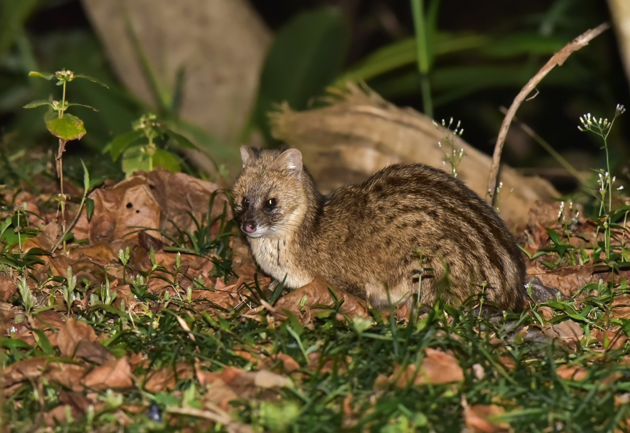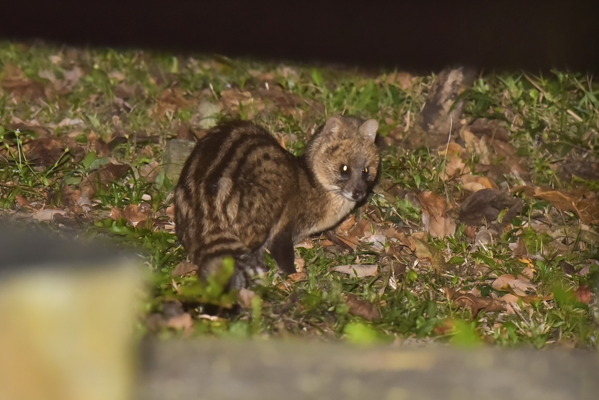 位於屏東縣獅子鄉的雙流國家森林遊樂區,為107年的遊樂區一系列的生態觀察活動進行了生物資源盤點,就在春初這個季節用肉眼及相機捕捉到夜行性動物麝香貓的蹤影,原來阿~園區的麝香貓那麼多,比起其它分布地區更容易觀察的到,在園區陽光草皮到森林教室300公尺不到的距離內就看到3隻不同的個體的麝香貓,還讓我們拍了幾張上相的照片後才離開,像貓一樣長長的尾巴,漂亮的毛色紋路,是雙流夜間最美麗的動物。 麝香貓是哺乳類靈貓科的動物,具有麝香腺體所以稱麝香貓,但和貓是不同類的生物,在分類上更接近白鼻心這種生物。雙流森林遊樂區屬於日間型的遊樂區,白天時開放遊客來步道踏青,吸收負離子、芬多精,欣賞溪流、魚、蝦、鳥類等豐富的生物資源,到了夜晚園區休園的時間就換成夜行性的動物的舞台了,由於園區夜間未開放,生物白天易受到驚嚇,到了夜晚就像全部活了過來一樣,黃嘴角鴞、飛鼠的叫聲此起彼落,森林底下傳來唏唏唆唆的聲音,麝香貓、白鼻心、穿山甲都開始出來覓食,溪流邊青竹絲、青蛙、過山蝦都能輕易地觀察到,整個園區就像在開一個自然派對。 為了能讓遊客能有不同的體驗,遊樂區在107年將規劃一系列的生態觀察體驗活動,適合親子偕同來到雙流國家森林遊樂區,上一堂在森林裡才能學到個課,相關活動資訊可關注雙流臉書粉絲專業(https://www.facebook.com/shuangliou.forest/)。