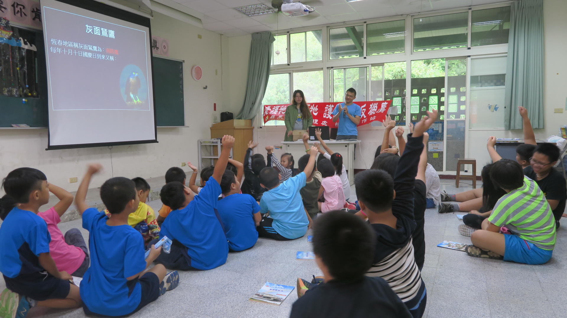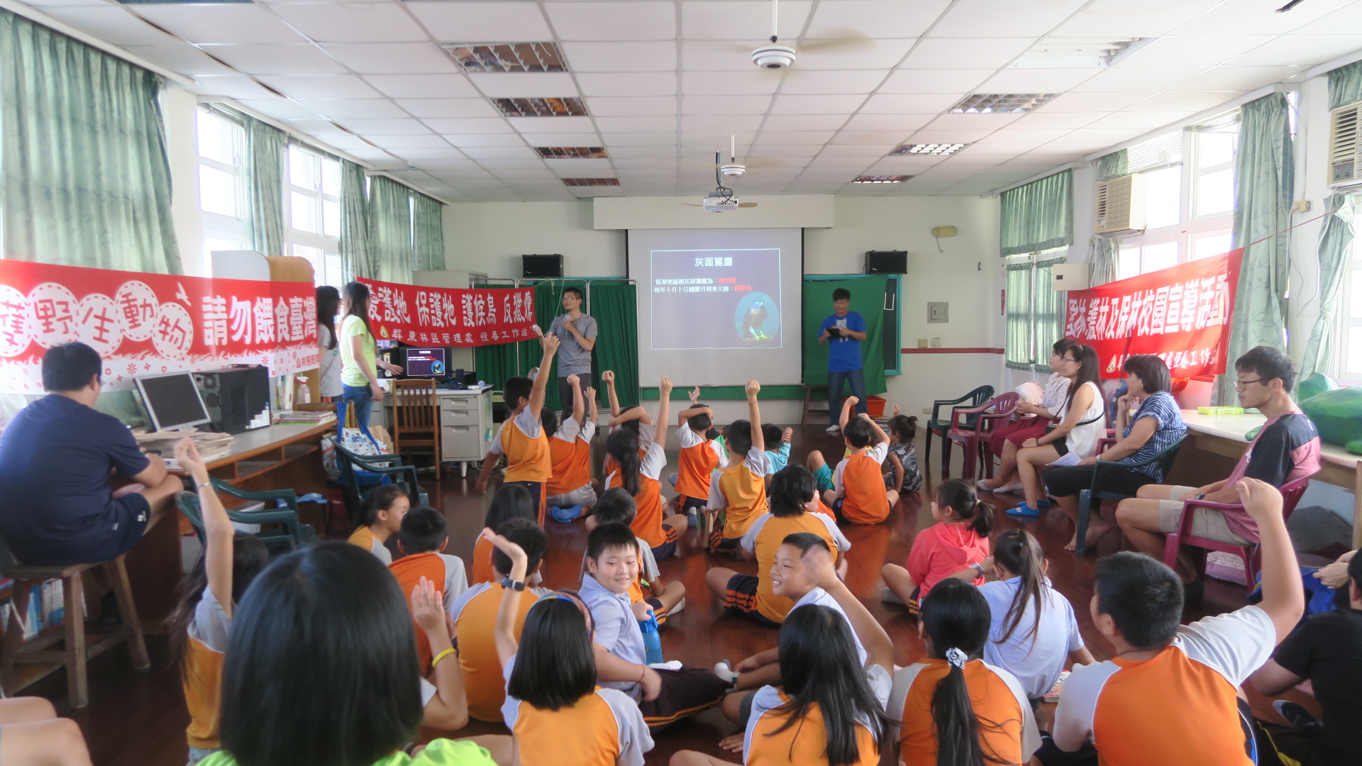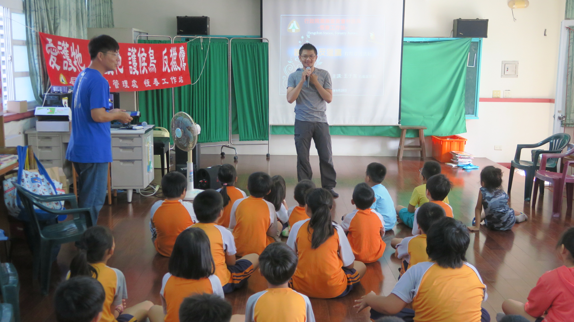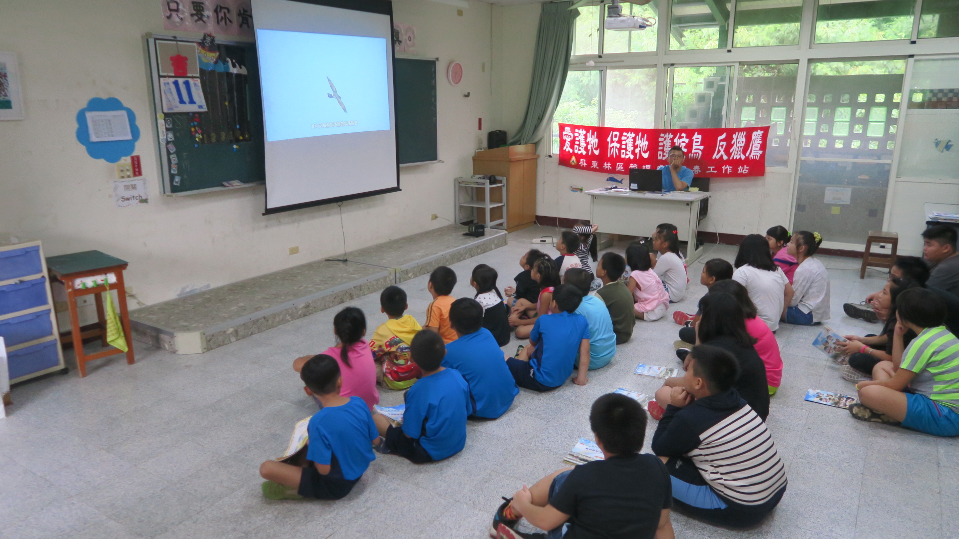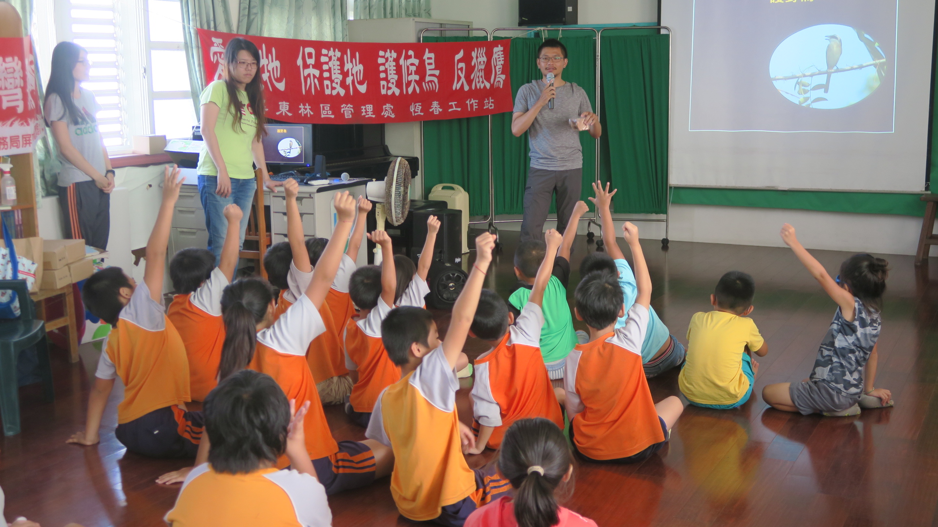 現正值秋天候鳥過境之際,林務局屏東林管處恆春工作站的同仁,為深植恆春半島小朋友保育觀念,讓候鳥平安過境,於9月11、28日分別到車城國小溫泉分校及墾丁國小鵝鑾分校進行「護野鳥、反獵鷹」保育宣導活動,宣導過程中小朋友們與工作站同仁互動良好,笑聲不斷,有效達成生態保育之教育目的,生態保育觀念深植在場每位小朋友心中,讓「護野鳥、反獵鷹」工作又多了一層最堅定的屏障。 為讓小朋友們了解保育候鳥重要性,運用你問我答方式讓小朋友更了解保育鳥類並設計連串淺顯易答題目,配合有獎徵答活動,讓小朋友們更加努力熟記「紅尾伯勞鳥、赤腹鷹、灰面鵟鷹」等三種不同顏色特徵的重要保育鳥類來搶答,藉此將保育觀念深植他們心中,有效宣導維護森林自然資源及環境教育之效用,他們也能成為保護山林及野生動物的小小英雄! 「做保育拿獎金!」農委會設有「取締或舉發違反野生動物保育法案件獎勵辦法」,提供犯罪間接證據者,發給新臺幣二千元至一萬元,提供嫌犯姓名或住址者,發給新臺幣四千元至二萬元,提供犯罪直接證據者,發給新臺幣六千元至三萬元,提供嫌犯姓名、住址及犯罪直接證據者,發給新臺幣一萬元至五萬元,直接逮捕現行犯或協助緝獲者,發給新臺幣四萬元至二十萬元,且就檢舉人之身份絕對保密,期望在各界的努力下能使恆春半島成為最友善的候鳥遷移中繼站。