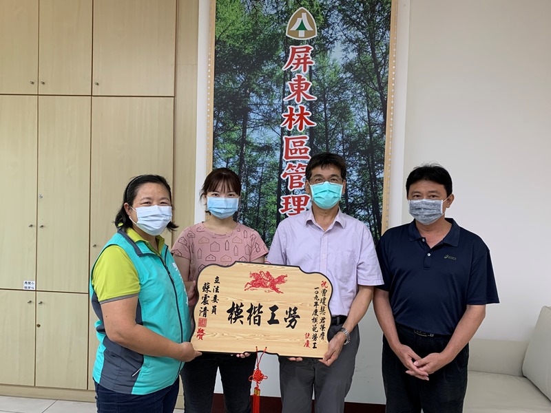 林務局屏東林管處曾瓊慧技術士榮獲屏東縣政府109年度模範勞工,蘇震清立委服務處今(4/29)日特致贈匾額一方表揚曾技術士,感謝其辛勞。 曾技術士於該處治山課服務,在工程專業上成績非凡,協助工程多次榮獲行政院農業委員會優良農建工程「優等」、「甲等」、「佳作」等殊榮,曾技術士除在工程業務上巾幗不讓鬚眉,在工程安全上更是用心,每年於汛期前辦理勞工衛生安全教育訓練及汛期防災應變講習,使同仁及工程現場勞工能更深入了解職場安全的重要性,強化現場安全。 屏東林管處表示,曾技術士工作積極認真,勇於任事,感謝屏東縣政府對該處第一線同仁的認真給予肯定,該處未來也將繼續努力守護台灣山林。
