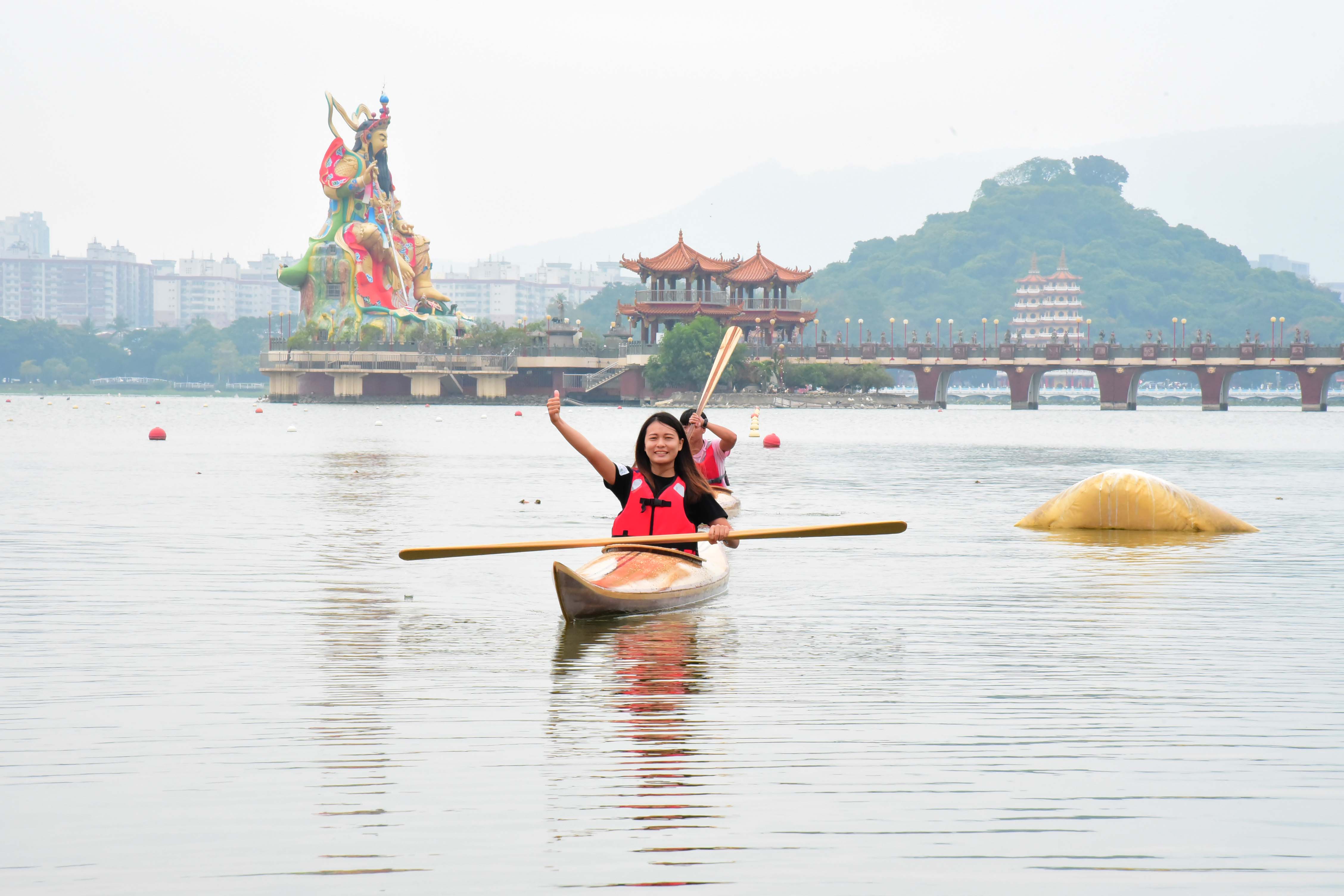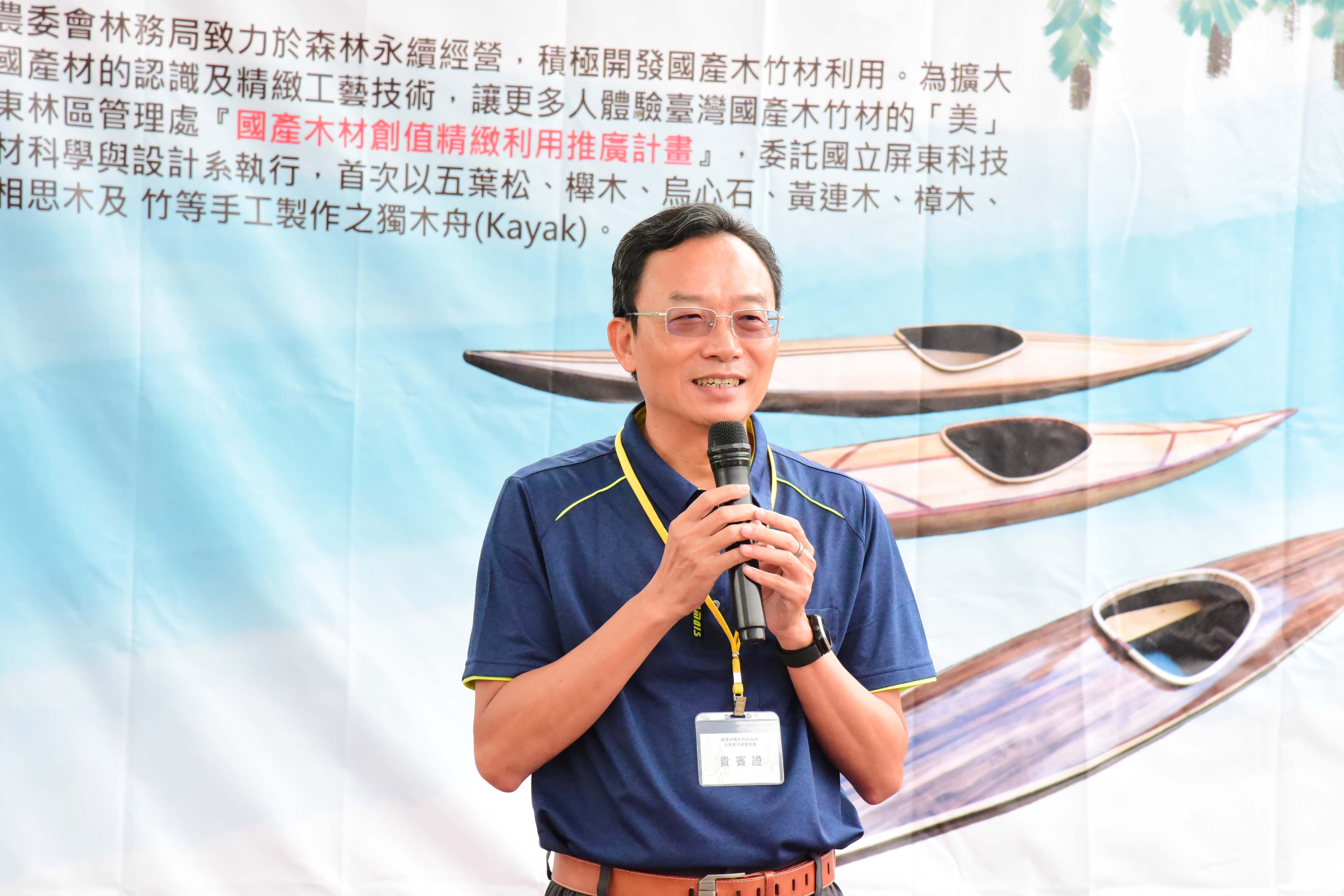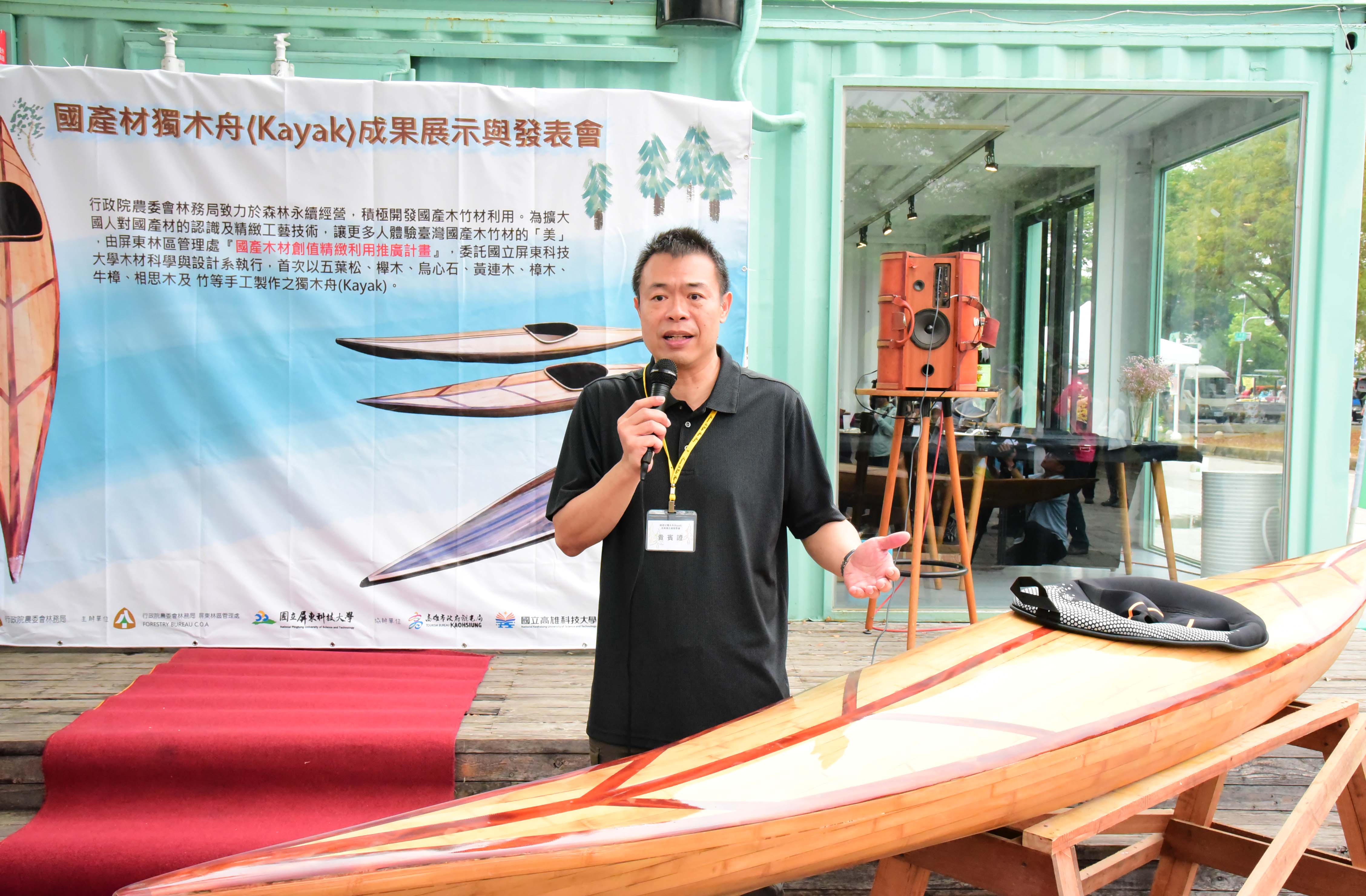 林務局屏東林區管理處與屏科大木設系合作「國產木材創值精緻利用推廣計畫」,致力於森林永續經營與木竹產業發展,積極推廣國產優質木材的多元利用,以及擴大國人對國產木竹材自然美之體驗與認識。首次以五葉松、櫸木、烏心石、黃連木、樟木、牛樟、相思木及竹等手工製作之獨木舟(Kayak),研發出在地化、精緻、高質之國產木材作品。屏科大木設系龍暐助理教授帶領系上碩士班研究生余浤銓經歷一年半的研究發展,利用木材特性,透過精緻、細緻、機制具備的特色下設計出國產木竹材質獨木舟,今日(10/23)在高雄蓮池潭舉行國產材獨木舟成果展示與發表會,讓民眾能更深入了解國產材如何以最精緻的手法創作出高品質的產品,同時也能更加熟悉台灣自產的木材特色。 屏東林區管理處張偉顗處長表示:「林務局推廣國產材應用,提供國內木材市場需求同時加強木材生產自給率,獨木舟製作不僅為南台灣活力象徵,永續性經營生產的國產材料更是具環境面、經濟面與社會面等意義,藉由國產材的紋理、色調選材設計出獨一無二、輕量強化之複合產品,完美融合美學與科學的水上工藝品。期望未來能持續結合產官學各界一同推廣國產材的精緻工藝技術與發展。」屏科大戴昌賢校長說:「屏科大致力推動跨領域特色課程,在獨木舟的設計製造上,不只有木設系、同時還需要加入森林系、休運系,同時也需要導入工程方面的專業人才,以流體力學概念,設計出最適合在海上破浪的舟體,未來更希望能透過校內跨系合作,不斷實驗、精進,朝向客製化休閒運動的器材開發,打量國人精準健康的優質生活。」 本次設計製作的獨木舟從國產材收集、製材乾燥、備製、設計配置、工法選擇與測試完工等繁複工序,皆由木設系余浤銓同學獨立製作三艘舟體,依木材樹種特質、木紋理、色調表現、不同拼板工序對次組合,設計出具美學品質、獨一無二的個性化圖案。加上曲面幾何加工、輕量強化複合技術,設計出流線型的船身達到最佳巡航控制性。完美融合美學以及科學的水上工藝品。期望能推廣國產材的精緻工藝技術與發展,有助於幫助台灣林業和森林保育邁向永續發展。 而隨著社會與經濟的成長,國人的生活品質從理性的滿足,提升至追求精神與心靈的層面。因此,人們為陶冶性情與抒發情感,而往往選擇利用戶外休閒體驗來增添生活中的樂趣。這次的展示活動邀水上活動專家進行划船示範,藉此結合台灣目前推廣國人的水上戶外活動。也期盼能讓人有獨處在台灣宏偉森林之中,優游於台灣寧靜水域的感覺,可謂山、水、人的結合體驗。