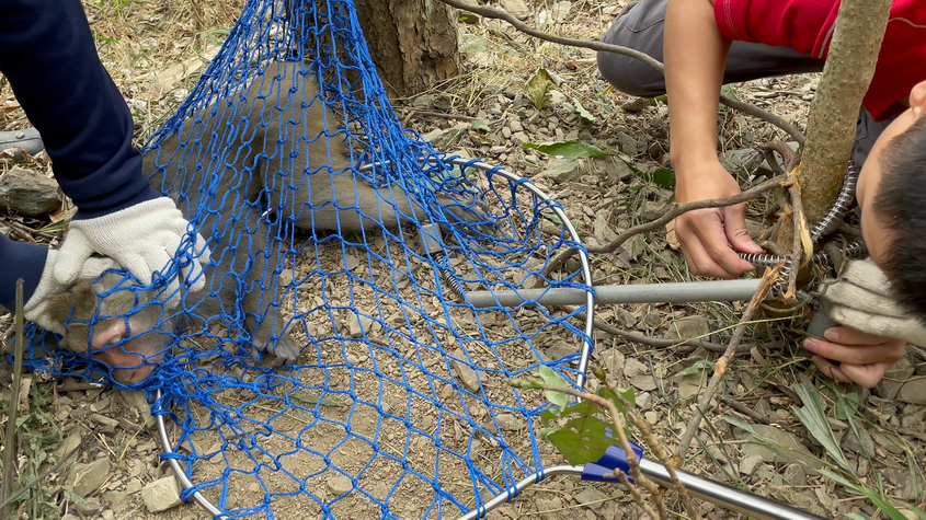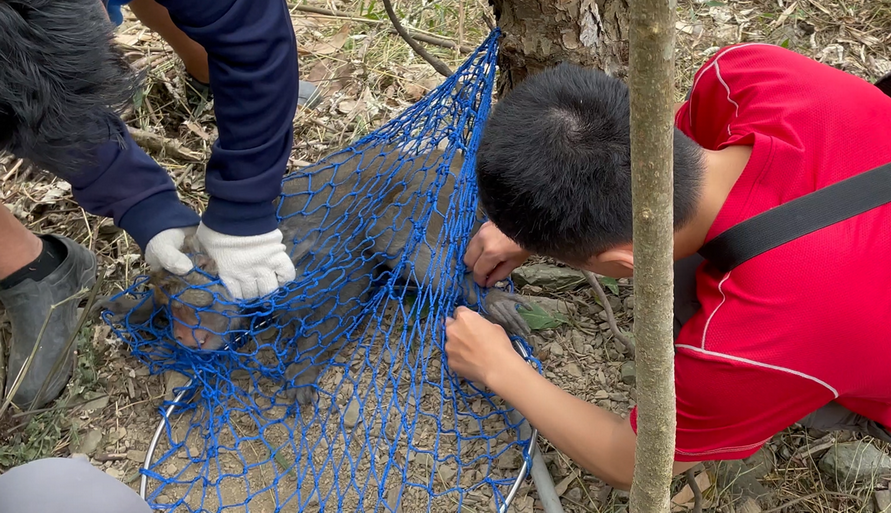 屏東林區管理處六龜工作站森林護管員日前巡視時,在六龜新開山區發現中套索陷阱的台灣野山羊,巡視人員立即解救山羊脫困,並搜查拆除附近其他的套索陷阱。不料2天後巡視時,在同一地點附近又發現另一中套索陷阱的台灣獼猴,緊急通報請求支援,在避免野生動物過度驚嚇的情況下,順利解救受困的山羊和獼猴,幸好兩隻動物都剛中陷阱不久,未有明顯外傷,評估後即放回山林中,結束一場驚魂。 依據野生動物保護法規定,除原住民族基於其傳統文化、祭儀、非營利自用外,無論在哪個地方,未經許可架設網具、陷阱、獸鋏或用其他獵具獵捕野生動物,都是違法行為,若獵捕台灣獼猴等一般類野生動物,可處新臺幣六萬元以上三十萬元以下罰緩,若獵捕台灣野山羊等保育類動物,更可處六月以上五年以下有期徒刑,得併科新臺幣二十萬元以上一百萬元以下罰金,況且這些隱形於山林間的索命陷阱也可能讓野狗、林農、森林護管員、生態調查人員…等不小心誤觸而受傷,實在非常危險。 隨著保育意識抬頭,屏東林管處呼籲勿亂放陷阱或獸鋏,也希望民眾若發現盜獵、違法架設陷阱等情事,可協助通報林務局、警察機關,一同守護野生動物和我們的家園。