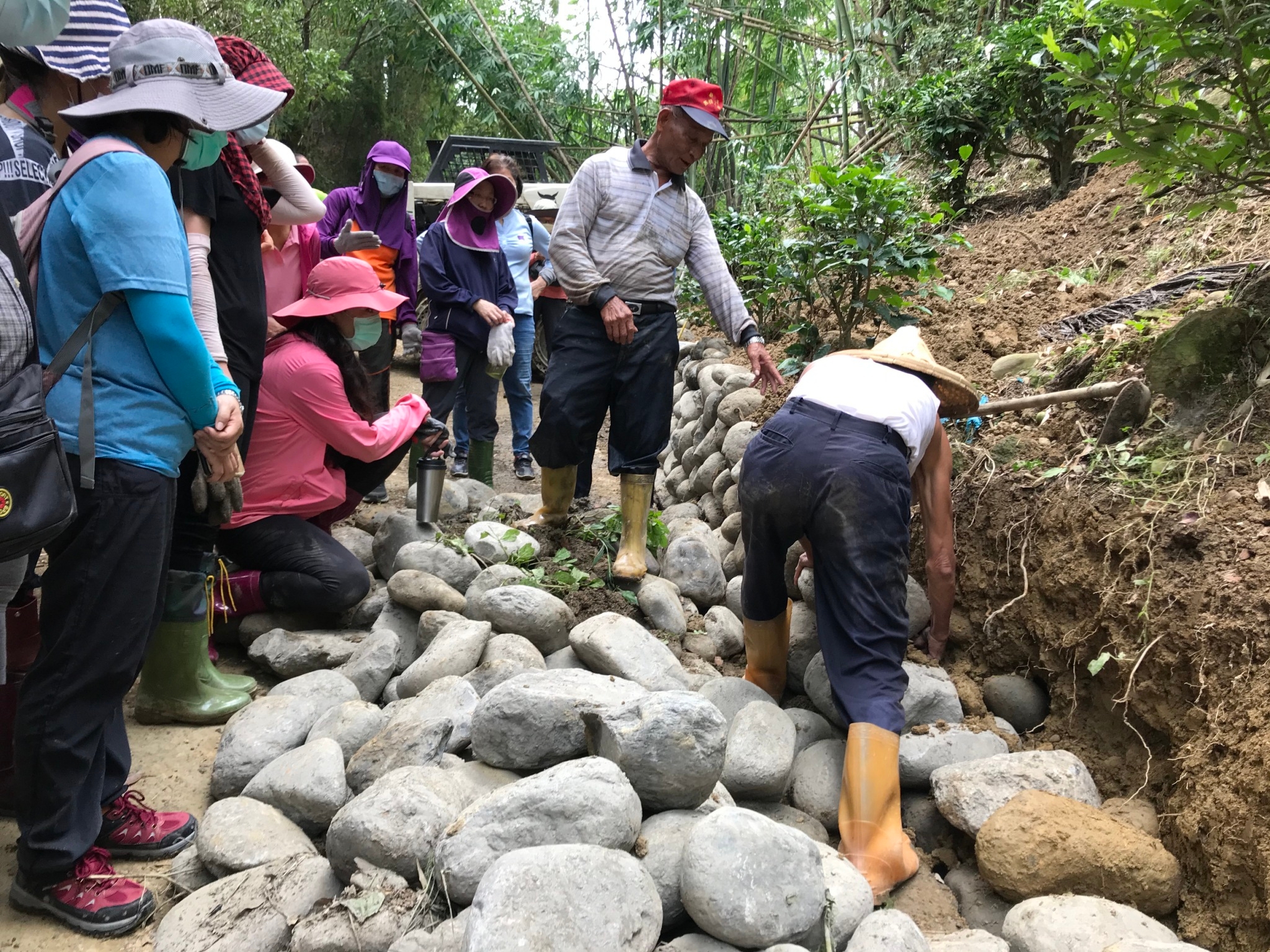一場跨區域跨族群跨語言的砌石技藝交流,從高雄市六龜區新威里的老茶園展開,林務局屏東林區管理處與高雄市寶來人文協會在110年8月26日合作舉辦砌石技藝交流工作坊,當天有來自六龜、美濃及桃源區寶山里的28位社區夥伴共同交流學習,由在地耆老分享老茶園以及先民遷移的歷史脈絡,另外也由台灣千里步道協會分享世界各地手作步道的案例,帶領學員實際操作步道周邊截水溝砌石工法。 六龜在日治時期是相當重要的樟腦產業所在地,當時吸引了桃竹苗一帶的客家族群隨著產業遷移至此,而新威里勸善堂是當地客家聚落的信仰中心,早期殿內恭奉的神明茶,一直都是由後方的老茶園供應,由於連年降雨沖刷造成茶園坍塌,導致茶樹陸續死亡。透過台灣千里步道協會專業講師的帶領,實際觀察老茶園步道周邊水流的走向、地勢與現地石頭位置等條件,運用溪石、竹木實際操作疊砌截水溝。未來將透過傳統砌石工法的整理,以及補植茶樹,讓老茶園恢復運作。 屏東林區管理處表示,除了此次的砌石技藝交流外,也將在9月16日辦理民俗工藝工作坊,歡迎六龜及桃源區在地居民們踴躍參與。未來也將舉辦環境教育主題工作坊,讓社區夥伴看見彼此,激發未來協力互助的機會,同時打造符合生態友善與融入常民生活使用的步道,傳承人與自然和諧共生的在地智慧。