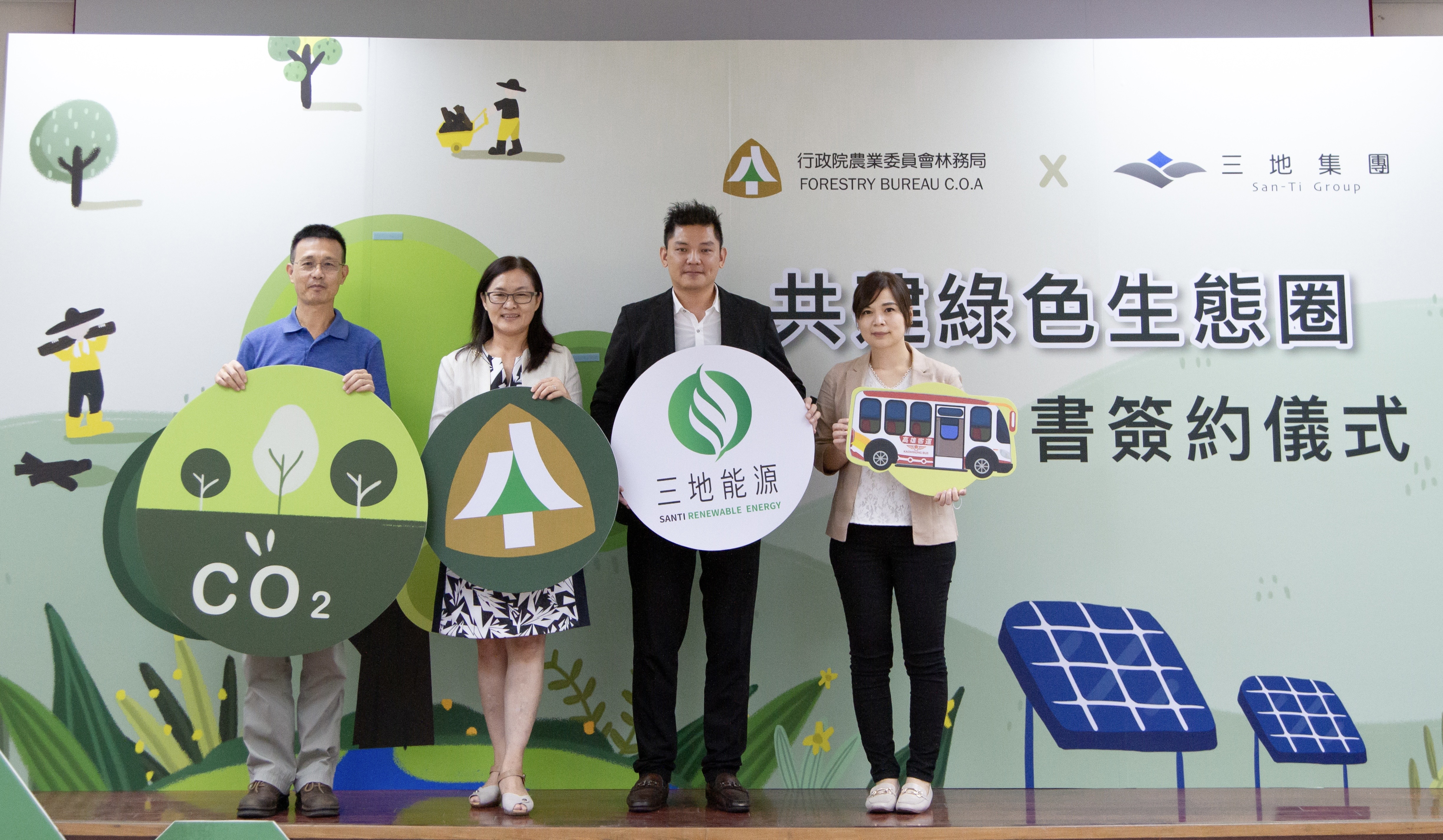 三地集團今日 (8/24)與行政院農業委員會林務局屏東林區管理處舉行合作意向書簽約儀式,雙方就共同推展屏東地區交通接駁與串聯、綠色旅遊、綠能光電、綠色生態等四大面向達成合作共識,期望藉由上述各面向多管齊下的執行,發揮產官合作最大功能性,在全球聚焦淨零減碳趨勢當下,加速臺灣淨零路徑穩健達標。 三地集團以提供「無所不在的美好生活」及「綠能永續,讓幸福延續」作為經營使命,深耕台灣綠色產業生態圈,希望透過企業努力來延緩地球暖化,達成集團ESG環境承諾和碳中和的願景。本次策略合作以發展屏東串到恆春半島綠色生態圈為核心,內容包括: (1) 聯手啟動綠色永續遊程:整合屏東雙流和墾丁國家森林遊樂區、三地集團旗下之生態休閒場域及光電案場等綠色資源,共同打造多元生態及教育意義兼具的綠色生態之旅。 (2) 加強交通動能:提供屏東林管處專案活動交通接駁,彌補偏鄉運輸的需求缺口,並串聯綠色廊帶之間的往返,提高交通便利性,為移動創造更多幸福感。 (3) 守護台灣綠色生態: 集團約十餘多公頃的山坡地,計畫在銀合歡移除後,由屏東林管處提供苗木及造林經驗,協助植栽復育工作。透過產官雙方穩定合作,齊心強化自然碳匯功能並達成生態永續性的目標。 (4) 發展綠能光電設置:響應綠能政策,集團將在獅子鄉之低地力價值處,設置無污染的太陽能光電系統,既能開創土地多元新生命,亦可提供下一代環境教育的概念及思維,更可在急難時能發揮功能,送電到偏鄉。 屏東林區管理處楊瑞芬處長表示,恆春半島為國土生態綠網的重要關注區,移除入侵外來植物銀合歡恢復熱帶季風林,是現階段的重要工作,將提供相思樹、臺灣樹蘭、海檬果、烏桕、克蘭樹等原生樹種苗木,協助三地集團一同參與恆春半島綠色網絡的建構,營造永續生態環境。也感謝三地集團願意提供本處專案活動交通接駁,以公益為出發點,融合環境教育、人文歷史、生態保育等,共同打造多元生態及教育意義兼具的旅遊體驗。 三地集團行銷長暨三地能源資深副總經理黃元正表示,全球面臨氣候暖化,集團秉持「人、土地、情感、關懷」發展理念,堅持「想做讓世界變的更美好的事」,以長期經營的角度進行綠色生態、綠色能源和森林碳權的規劃及經營,未來將投入更多低碳經濟活動,回饋土地及鄉親,同時持續與屏東縣政府和屏東林管處合作,共創綠色生活多一度的屏東。