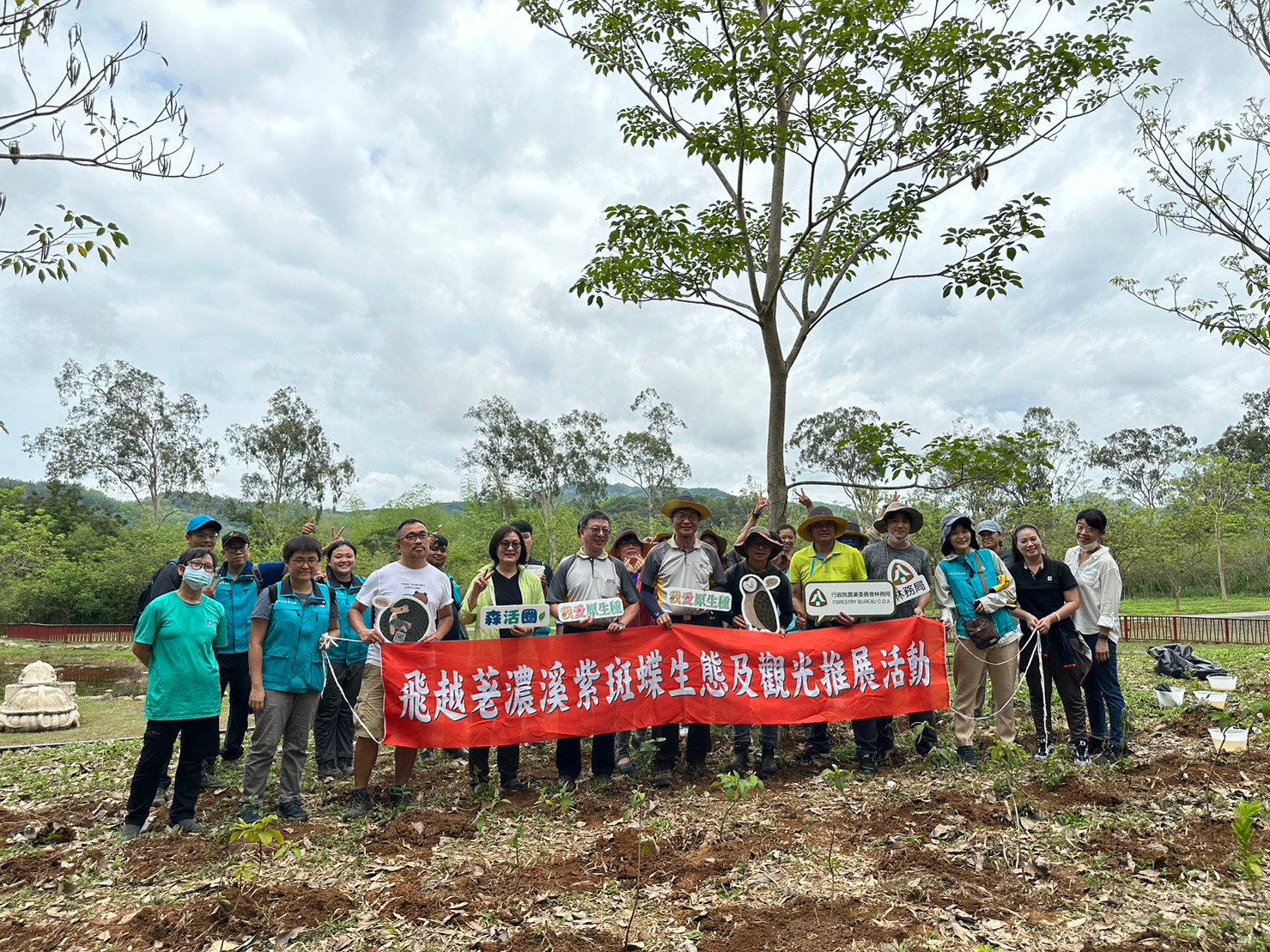 以六龜高觀光旅遊價值的蝴蝶為契機,攜手合作在112年5月23日於新威森林公園種下千株適合淺山蝴蝶的原生蜜源植物。考量不同種蜜源植物的生態特性與景觀價值,規劃以桃金孃、野牡丹、枯里珍、山芙蓉、大頭茶等5種原生植物來營造淺山蜜源棲地,除了吸引各種蝴蝶、飛蛾等昆蟲前來吸食花蜜與繁衍生息,同時也能提供眾多鳥類前來取食植物的果實,不僅提升當地生物多樣性,還兼具蝴蝶觀光旅遊價值。 屏東林區管處楊瑞芬處長表示茂林國家風景管處在紫斑蝶的保育議題上著墨甚深透過國土綠網「六龜甲仙淺山森林保育軸帶」的紫斑蝶保育議題,開啟了跨域合作的契機。這一次更借重了國立中山大學顏聖紘博士的專業,將蝴蝶產業文化及蜜源植物的應用的研究成果加成運用,在新威森林公園中規劃種植四季皆會開花的蜜源植物供蝴蝶取食,將吸引不同種類的蝴蝶全年造訪。茂管處柯建興處長表示,未來與屏東林區管處的合作會更加密切,除了紫斑蝶,美濃的黃蝶、六龜的彩蝶也會是未來發展重點,也因為台灣紫斑蝶生態保育協會廖金山老師的協助及專業建議,讓六龜觀光發展重點紫斑蝶能夠生生不息。國立中山大學顏聖紘副教授表示,對於此次的跨機關合作抱有相當大的期待,而本次植物的選擇,除了考量過去曾經有過的森林樣貌,進而推測未來理想的森林環境,同時也要考慮景觀效果及生態功能,因此先挑選了桃金孃、野牡丹、枯里珍、山芙蓉及大頭茶這5種在地原生蜜源植物,未來也將繼續觀察,蜜源植物營造後的生態效果。 六龜地區過去曾在蝴蝶加工產業中扮演相當重要的角色,有高達300種蝴蝶在此被發現,豐富的蝴蝶種類是觀光旅遊發展中重要的資源。隨著社會發展的過程,過去的商業性捕捉,以及土地開發利用問題,讓漫天蝴蝶盛況不復見,也因此促使在地公私部門積極思考如何紫斑蝶保育議題。透過523屏東林區管處及茂管處的合作,在新威森林公園種下千株植物營造原生蜜源棲地,成為跨機關生態保育的合作里程碑。未來屏東林區管處也將透過宣導活動,讓營造原生蜜源環境的保育觀念深植在社區居民及莘莘學子心中,提高民眾對於淺山蝴蝶生態保育的認識與關注,讓蝴蝶生態保育與觀光旅遊發展互惠雙贏。
