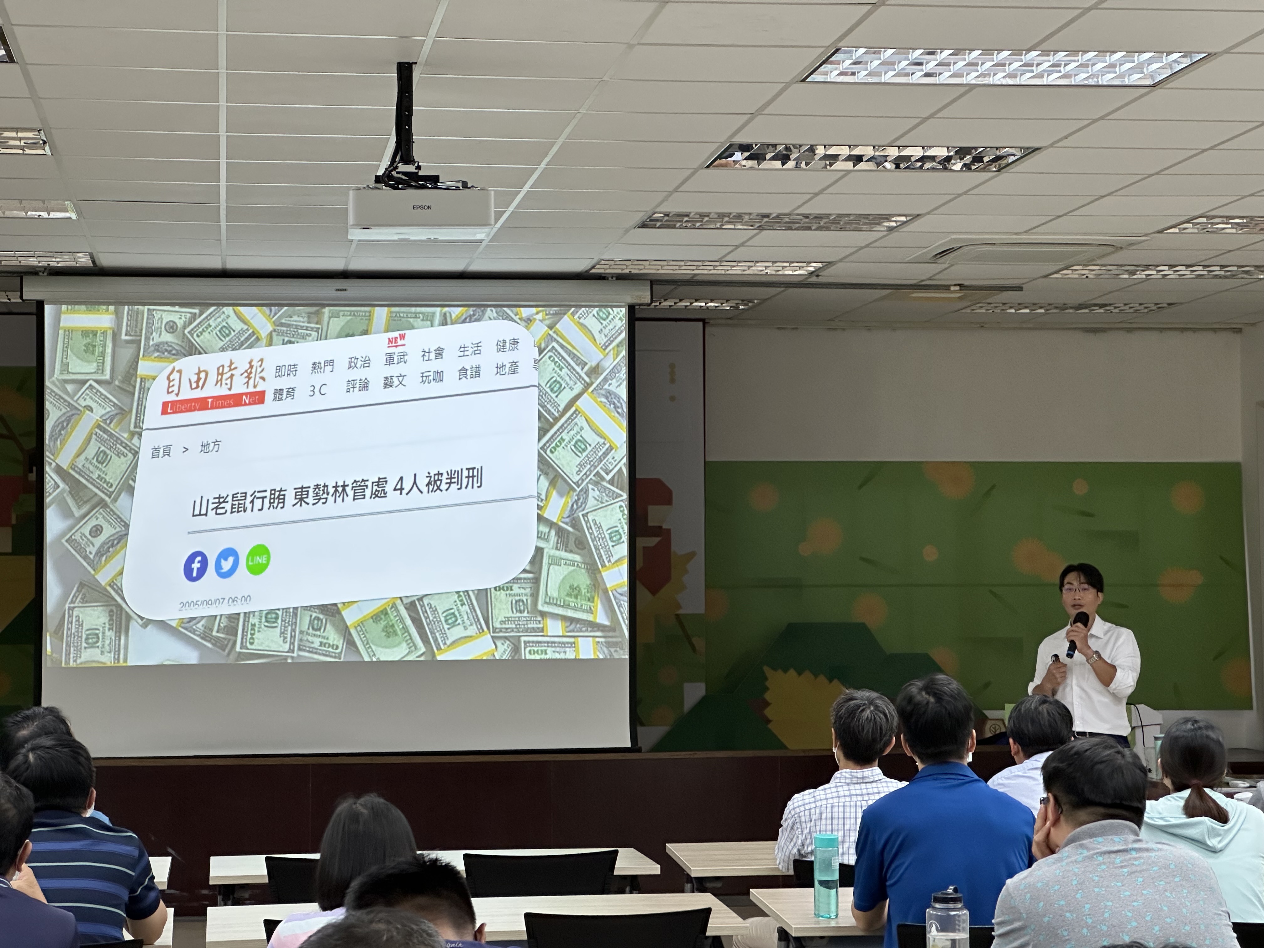 「廉能」不但是當代民主國家之核心價值,「法治」更是促進社會發展之重要基石,林業及自然保育署屏東分署綜理轄區林業及自然保育等相關公務上業務,更應廉潔自持、奉公守法並依法行政。 屏東分署鑒於近年來各機關不斷提倡廉能之重要性,又為深化同仁法紀觀念,宣揚反貪倡廉決心,爰於 112 年 8 月 16日及17日,連續兩日辦理廉政宣導座談會,由分署長楊瑞芬主持,率領全分署主管及同仁約120人與會,希冀藉此座談會協助機關同仁了解廉能治理之核心價值,同時警惕應依法行事以免誤蹈法網。 本次座談會聘請臺灣臺南地方檢察署、法務部廉政署駐署檢察官洪欣昇擔任講座,以實務常見之案例為題,深入淺出解析各項法律規範之構成要件,並援引相關法院判決見解,轉化冰冷案例為靈活多元教育素材,契合實務需求,使公平公正之廉潔思考意識深植人心,俾益與會人員內化相關知識,進而確立正確之法規認知。 屏東分署分署長楊瑞芬除感謝洪檢察官欣昇撥冗蒞臨分署授課外,也特別提醒同仁應依法行政,恪遵法令並廉潔自持,並勗勉同仁專心致志、兢兢業業於公務,成為守衛我國林業及自然保育之堅實棟樑。
