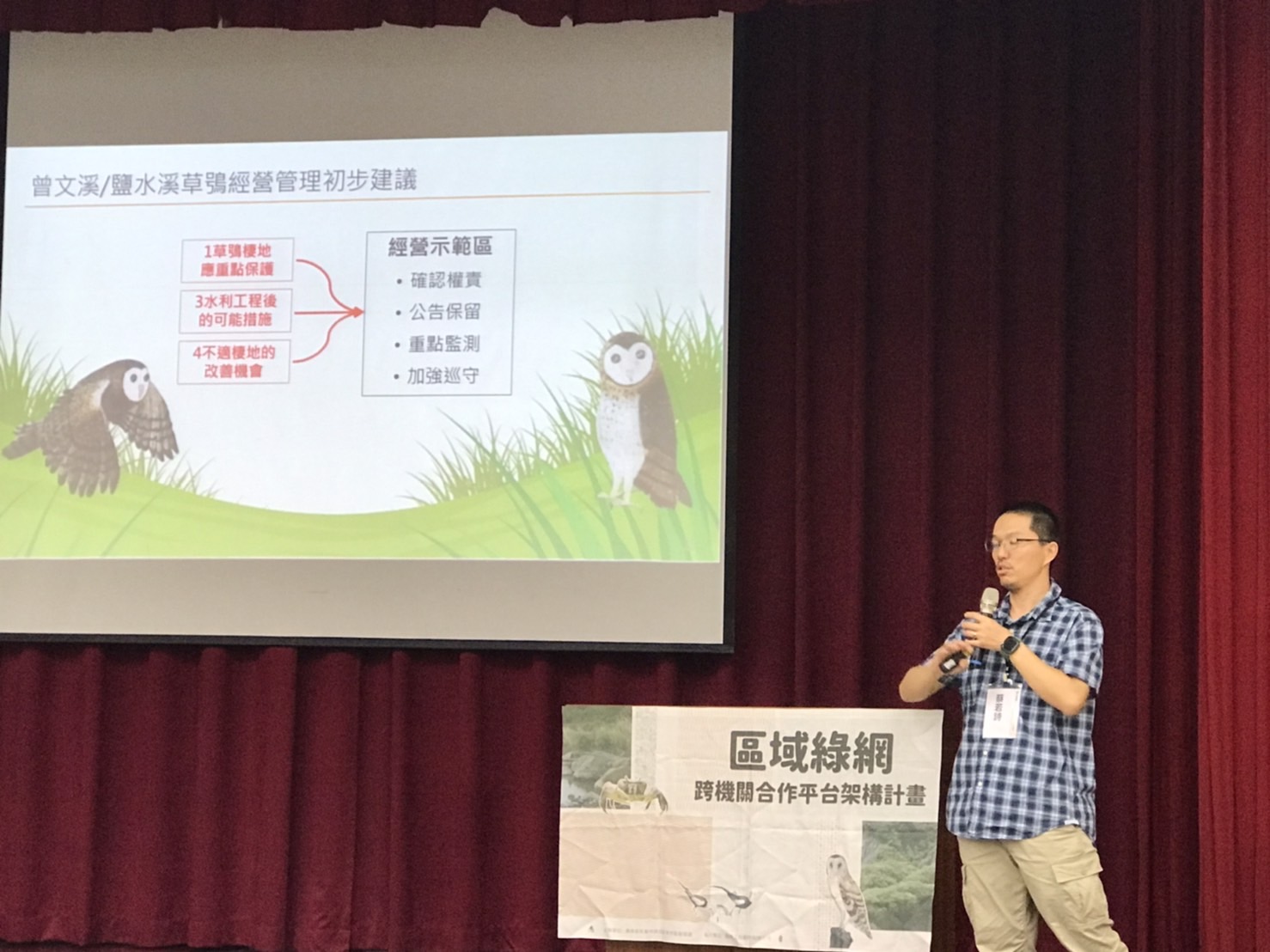 林業及自然保育署屏東分署與嘉義分署於2021年開始攜手成立首屆「草鴞保育交流平台」,期許在現階段的保育成果之下,繼續攜手與專家學者、政府機關、民間團體公私協力,共同為草鴞打造更安全的生存環境;且以屏東、嘉義分署輪流辦理的方式,每年分享在嘉義、台南、高雄、屏東四個縣市推動草鴞保育的工作成果。今年,由林業保育署屏東分署於9月15日在國立高雄師範大學燕巢校區辦理「2023年草鴞水雉保育交流平台會議」。 本次平台延續去年10月17日,由嘉義分署主辦策劃計24個單位共同簽署『草鴞保育聯盟合作宣言』,同意在各自的職掌上加入友善草鴞之相關規劃,透過跨機關合作,協力推動草鴞保育各項行動,串連成為草鴞保育之聯盟。今年由屏東分署辦理交流平台,分享階段性的推進成果,邀請到經濟部水利署第七河川局、南區水資源局、第六河川局、高速公路局南區養護工程分局及白河段、交通部公路總局第三區養護工程處、台江國家公園管理處、國科會南部科學園區管理局、國軍第四戰術戰鬥機聯隊、國軍第六混合聯隊、嘉義縣政府、台南市政府、高雄市政府、屏東縣政府、財團法人慈心有機農業發展基金會、屏東縣野鳥學會、高雄市野鳥學會、台南市野鳥學會及生多所與農業部下相關單位等37個公私部門、近百人到場共襄盛舉本屆的盛事。 林業及自然保育署主任秘書邱立文於交流會議開場時表示,林業保育署從2018年開始推動綠網計畫迄今,透過公私部門及跨機關不同面向的合作,達到保護區外保護物種及生物多樣性的目的,計畫中盤點出22種瀕危物種(包含草鴞),並擬訂整體的保育行動計畫,供各界做為執行依據。另農田也是重要的生態系統之一,如何讓農民收益與保育兼顧,是非常重要的課題,林業保育署近年積極推動保育標章協助農民擴大通路行銷;目前有草鴞、水雉、石虎、水獺、台灣黑熊的生態服務給付政策鼓勵農民參與瀕危物種保育及棲地確保;在林業保育署嘉義分署也進行諸羅樹蛙的生態服務給付試辦,希望農民在犧牲自己的收獲,保育瀕危物種之餘,能由政府給付生態薪水,鼓勵更多農民友善耕作。 在草鴞生態監測調查部分,邀請到國立嘉義大學蔡若詩老師分享衛星定位追蹤估計草鴞族群量的研究成果、臺南市野生動物保育學會曾翌碩總幹事談及台南地區的救傷與生態調查經驗、國立屏東科技大學洪孝宇博士分享利用除草有利維持草鴞棲地營造白茅在棲地中的生長優勢;另外也針對草鴞救傷,邀請到屏科大保育類野生動物收容中心提及在這兩年共救傷15隻個體其中一隻二次救援的救傷經驗,以及請高雄市政府、屏東縣政府代表分享透過生態服務給付由民間共同參與草鴞保育工作的執行成果,相關的成果持續累積較去年面向更多更廣。在水雉保育部分,邀請台南市野鳥學會方文揚先生講述在台南官田水雉園區經營的過程、高雄市野鳥學會介紹如何在美濃湖水雉園區投入棲地復育的工作。 今年除草鴞與水雉保育工作的專題分享之餘,還規劃友善草鴞、水雉的表揚儀式,主要是為感謝民間與公部門默默執行草鴞與水雉保育工作的伙伴,受到表揚的對象包含草鴞救傷通報的農民與空軍單位、參與草鴞、水雉保育的農民與民間團體,以及頒發終身貢獻獎給予在生前長期投入水雉保育工作的高雄市野鳥學會前理事長邱滿星先生、官田水雉生態教育園區前主任翁榮炫先生,讓參與的夥伴們都倍感溫馨。 對於與會者的提問,林業保育署石芝菁科長回應,後續生態服務給付將會考量因地適宜的生態補助方案,提供不同縣市更細緻的生態補助獎勵辦法;在農產品通路逐漸改善之後,也會就菱角撥殼農機具尚需改善的需求再與其他農政單位ㄧ起來努力。生物多樣性研究所林瑞興組長則提醒,在專注草鴞棲地營造的同時,也要兼顧草鴞覓食食源的需求,及環境的生物多樣性。 林業保育署屏東分署楊瑞芬分署長表示,草鴞保育交流平台迄今進入到第三年,今年首次納入水雉保育的議題,因為草鴞與水雉同樣為生存於淺山、平原地區的物種,其棲地容易因人為發展而受到威脅,同時也是嘉義、屏東分署在踐行國土生態保育綠色網絡計畫,推動區域保育軸帶內所關注的重要物種,所以在今日平台會議共同納入討論,盼更多公私部門、更多民眾一起參與水雉、草鴞的保育工作。