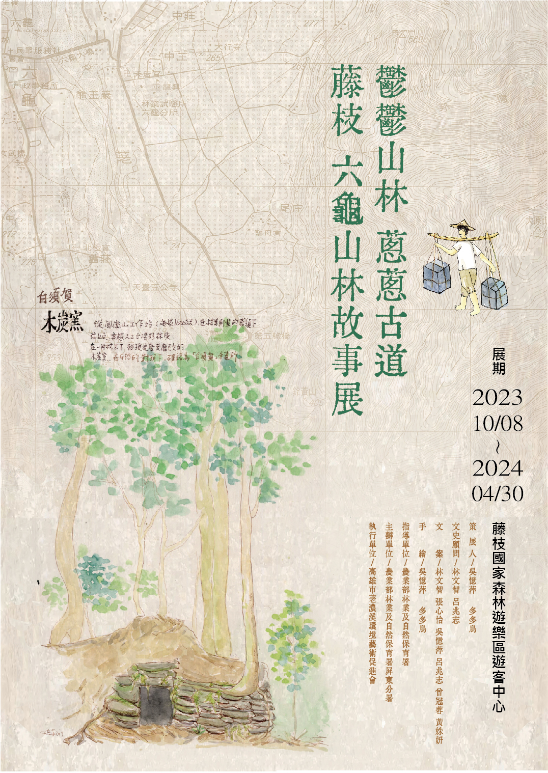 「鬱鬱山林 蔥蔥古道—藤枝 六龜山林故事展」在112年10月8日於藤枝國家森林園樂區遊客中心開展,林業保育署屏東分署與高雄市荖濃溪環境藝術促進會共同合作,找出屬於藤枝及六龜山林的故事。藤枝及六龜地區的開發源於日治時期,當時為了採取樟樹製作樟腦開闢了許多的林間道路,「六龜警備線」、「腦長及腦丁」及「島內記事」等珍貴史料將完整呈現在展覽中,觀迎遊客們到藤枝親近大自然聽山林的故事。 「鬱鬱山林 蔥蔥古道—藤枝 六龜山林故事展」展覽期由112年10月8日起至113年4月30日止,本次展覽以藝術方式回顧歷史,同時也邀請國產材文創品、原生山茶及森林蜜等在地農創品牌進駐,讓來到藤枝的遊客能夠更進一步的認識在地特色產業。後續也將推出古道半日遊、一日遊以及在地品牌達人互動體驗等活動。 林業保育署屏東分署特別提醒,藤枝聯外道路目前尚未全線開放車輛通行,遊客需於18公里處步行1公里方抵達藤枝國家森林遊樂區。因遊樂區位於中海拔山區,氣溫較低且天氣多變化,遊客需評估身體狀況並挑選適合於山區活動的裝備,並穿著便於山區行走的鞋子。 有關藤枝國家森林遊樂區相關活動資訊,將隨時更新林業保育署屏東分署官網及臉書粉絲專頁、「藤枝國家森林遊樂區」臉書粉絲專頁。