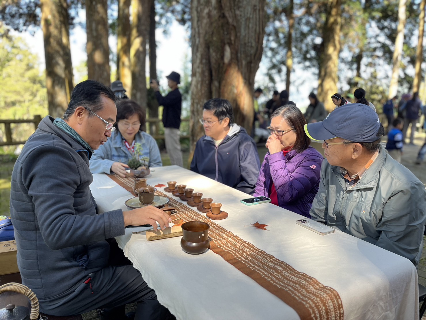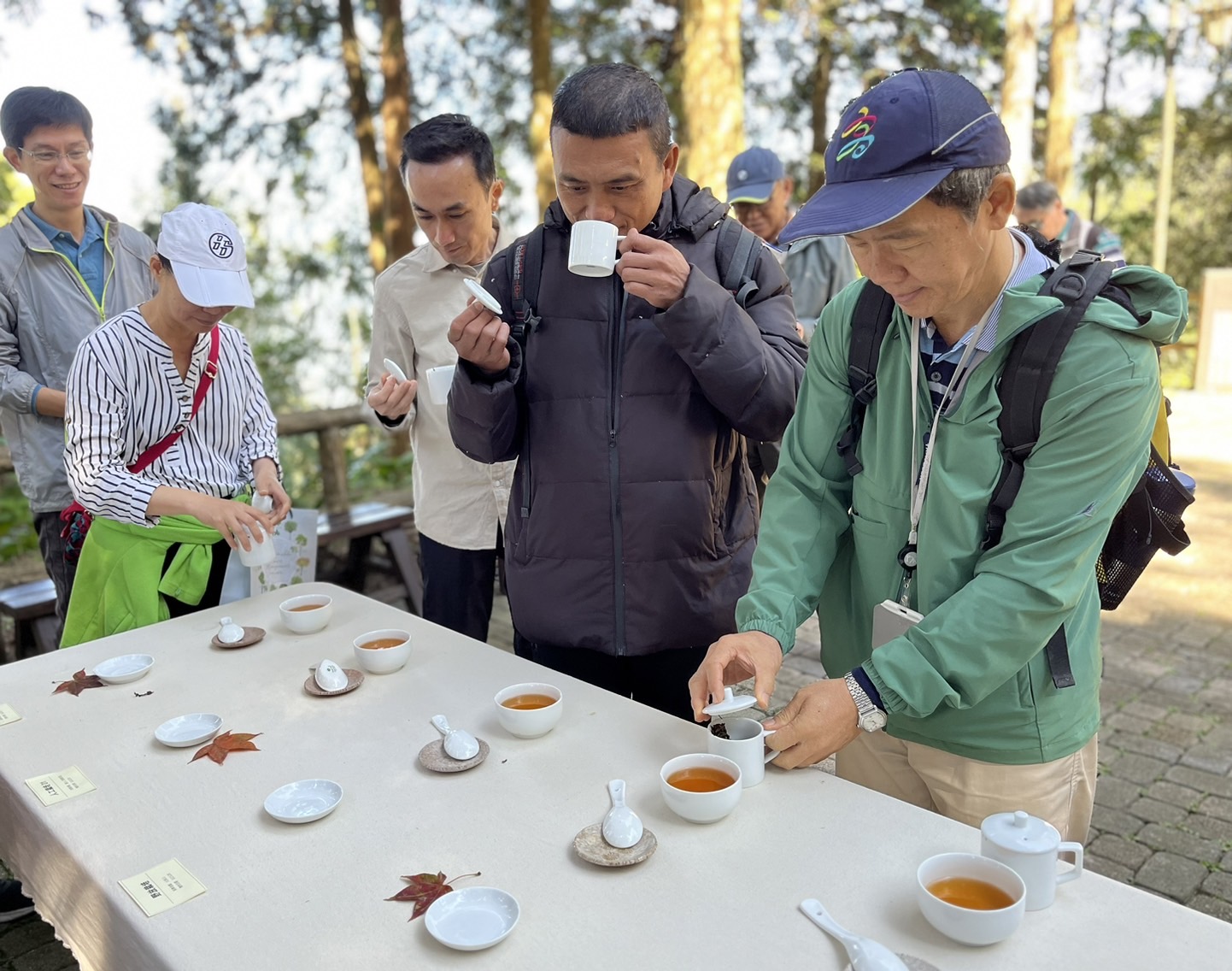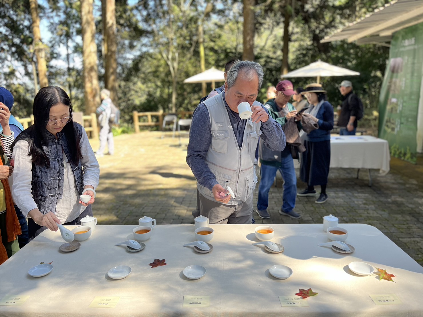 臺灣山茶「生態茶風土品飲會」於藤枝國家森林遊樂區的森濤平台悅耳鳥鳴聲與晨熙間悠然揭開序幕,林業及自然保育署屏東分署112年11月26日邀請農業部茶及飲料作物改良場臺東分場黃校翊助理研究員、林業試驗所六龜研究中心周富三研究員與行政院南部聯合服務中心,以及荖濃溪環境藝術促進會、寶山社區發展協會、十八羅漢山自然人文協會、六龜關懷協會、高雄市寶來人文協會、長榮大學USR團隊等各界好朋友,來到藤枝悠然山境間、共品六龜生態茶。首先由高雄市寶來人文協會李婉玲總幹事帶領大家認識原生臺灣山茶不同品系在臺灣分布的區域,以及認識六龜山茶產區與六龜品系的獨特之處,並在現場展示臺灣山茶苗木的生長模樣,緊接著荖濃溪環境藝術促進會理事長林文智介紹林下栽種山茶的生態意義,再由專業茶師林文琪老師介紹手工茶的製作流程,最後是黃校翊助理研究員說明體驗茶評鑑杯的流程;接著入座林下茶席,由專業茶師引領來賓品飲來自不同風土環境與栽培方式的六龜生態山茶,品嚐茶湯中的不同風味。現場也邀請六龜、桃源地區的在地茶品牌順發茶園、發現山茶FAXIAN SHAN CHA、拙樸山茶,多多鳥濕地學校、拿普原生茶有機茶園、喜來冠山茶坊展攤,呈現多元的山茶風味。 臺灣以茶為名的12種植物裡,臺灣山茶是本土唯一可供飲用的原生茶種,生長於海拔600-1,600公尺的森林山野,分布於南投、嘉義、高雄、臺東山區等地區。目前外界所稱的六龜山茶,從品系來看屬「六龜品系」,即分布於南部的嘉義、臺南、高雄、屏東一帶山區,從茶產業來看,則是指出自六龜茶區的山茶,其茶菁來源包含高雄市六龜區、桃源區寶山里、茂林區等地茶農所栽培供應,六龜茶區更是因為當初的天時地利人和的種種因素,形成最早具備生產規模的山茶產區。 臺灣山茶的原生環境在中央山脈兩側山林之中,習於臺灣風土、耐病蟲害,闊葉樹林下或針葉樹林下均能生長良好,適宜自然野放的栽培方式,且因其生長特性,人工栽培也適宜生長於有上層高大林木遮蔭處,富含腐植質及礦物質砂石壤土或砂質黏土,山區霧氣繚繞,修剪的枝葉與天然腐植質滋養,不需另外過度澆灌或施肥。現下林業保育署所推行的林下經濟山茶或目前六龜地區以友善生態方式人工栽培的山茶,皆鼓勵以具有類似天然複層林結構的生育地、預留足夠寬距讓根系自然伸展、不矮化植株、天然資材防治病蟲害等方式使茶樹健康發展,種植約三年後,每年春、夏雨後時節皆可採收收成;以六龜山茶多半種植於林下環境,受到豐富生態、植物相影響,更是呈現出多元野性的風味。 行政院南部聯合服務中心陳文亮副執行長表示,支持林業保育署的山村綠色經濟政策,臺灣山茶為六龜、桃源社區部落的珍寶,是難得的原生茶,會積極共同推廣這種兼顧生態環境、以友善環境生產經營的臺灣原生山茶。 林業保育署屏東分署楊瑞芬分署長表示,為推動六龜、桃源地區的山村綠色經濟產業永續發展,經在地協力團隊盤整、評估原生臺灣山茶具有發展潛力,且適合以友善生態方式栽培生產,可兼顧維持森林生物多樣性及山村居民產業生計。今日品飲會帶給大家的是,五月遲來的雨水之後,於六龜至桃源地區一帶採取來自野生、野放、人工栽培的山茶,並以手工、日曬方式製作,以保留茶葉活性,且隨陳放時間越長而轉化出不同層次的風味,展現不同栽培方式與環境所呈現的山茶風味,期待藉由今日的生態茶品飲會,讓更多人認識原生臺灣山茶與其多元的風味,諸如薄荷香、肉桂香、蜜香、蕈菇、杏仁、木質等特殊香氣。期望透過推動山村綠色經濟產業將森林生態系的多元服務價值惠益分享給在地居民,促進森林永續經營及里山倡議理念,一同感受充滿生命力的森林。