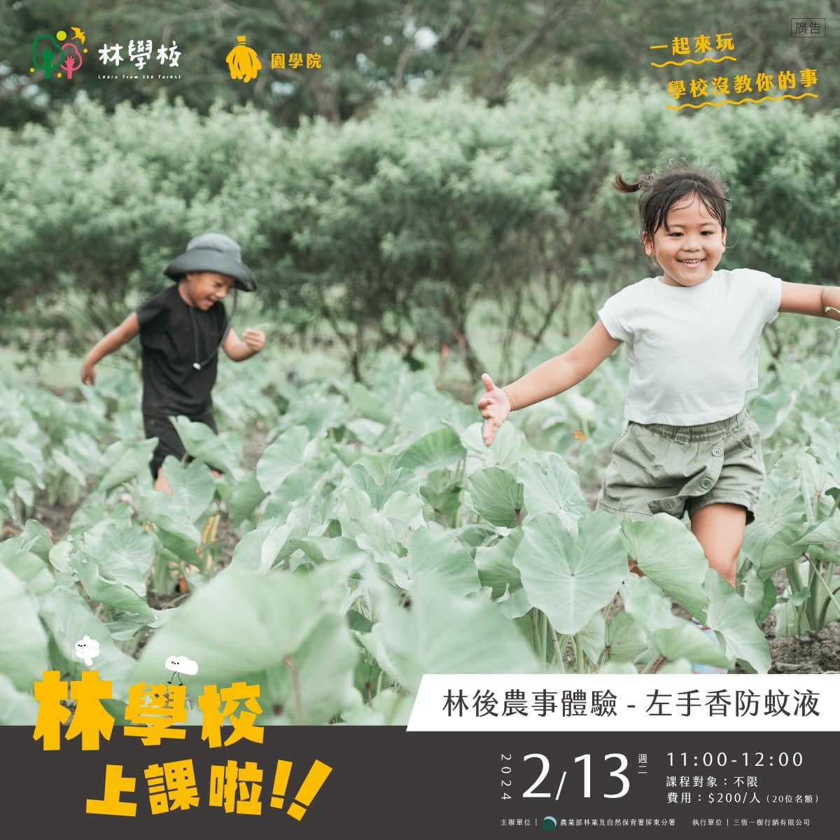 農業部林業及自然保育署屏東分署攜手林學校今(113)年開創新的品牌市集「林・集合」匯聚同具有土地友善、森林友善、文化傳承、永續生活理念的店家,首次於春節初三、初四(2/12 ~ 2/13)期間在林後四林平地森林園區開市,綻放繽紛活力。 林業保育署屏東分署自110年在園區創立了一所無框架的「林學校」,向山林、土地、自然生態學習,創校以來廣受好評。今年為慶祝林後四林平地森林園區即將建園滿10週年,一同啟動「以林出發,集森林之氣,合友善之融」的全新市集品牌-『林・集合』,每季開辦,期待將永續、山林、環境生態、原民工藝等元素為園區注入活力,並配合四季氛圍打造不同的市集,滿足五感體驗。 『林・集合』首場市集以「春分・來林」為題,邀請20攤友善農產、低碳飲食、特色手作、療癒植栽、職人工藝等風格商品,更串聯了原住民文化、音樂演出、體育課、山學院親子體能遊戲等豐富活動。家長們可提前為小朋友報名參加體驗課程,以有趣好玩的方式學到學校沒教的知識,這次還特別邀請了部落媽媽們用繪本故事為大家展開原住民文化的奇妙旅程,絕對是小朋友們的最愛;大人們則可在市集中尋寶,再到林下野餐放鬆心情,享受愉快的新春假期。 2024龍年新春,來林後四林平地森林園區感受獨特的「林・集合」市集氛圍、發現樂趣吧!更多詳情請追蹤林後四林平地森林園區的Facebook粉絲專頁,也別忘了提前報名體驗課程:https://reurl.cc/54ROr7。 林・集合X 林後四林平地森林園區 電話:(08) 735-3177 林學校體驗課程線上報名:https://reurl.cc/54ROr7 林學校遊程線上預訂:https://forest040.rezio.shop/zh-TW Facebook粉專:https://www.facebook.com/linhousihlin