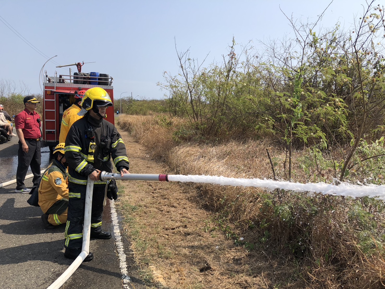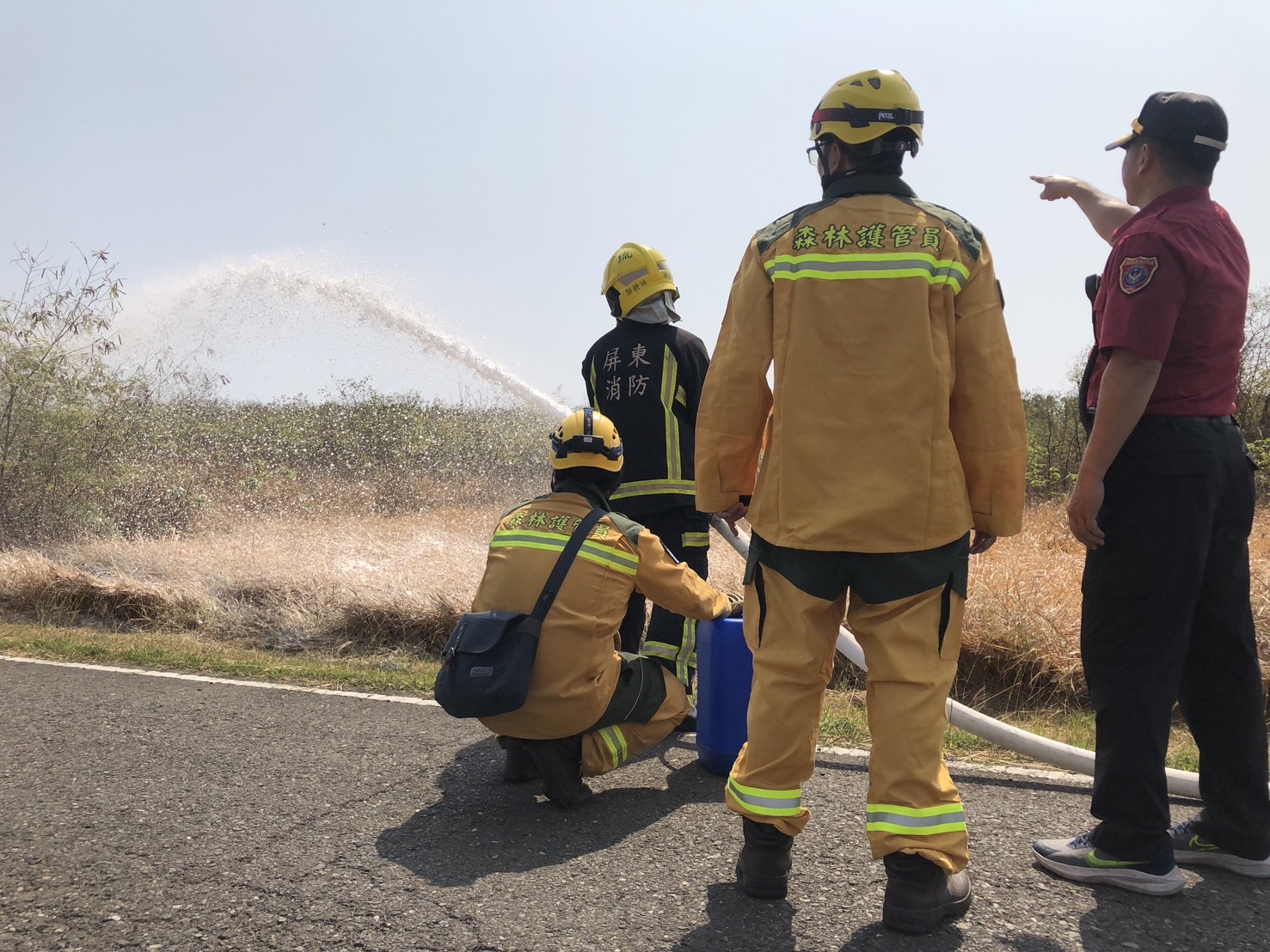 因應近來南部氣候乾燥,為防範離島小琉球森林火災發生及強化救災效率,林業保育署屏東分署與屏東縣政府消防局琉球分隊共同在『第2448號保安林』進行防火演練及噴灑環保阻燃劑,來防範保安林森林火災發生,並模擬森林火災時,機關間分工合作機制研討,以增進提高對發生森林火災應變效率。同時搭配林業保育署所建置林火風險評估系統,就高風險火災區域,進行火災燃料移除及防範規劃,減少火災延燒時間,以確保森林資源。 本次演練所噴灑阻燃劑為環保型阻燃劑,可降低燃料起火及延燒速度,對生態環境影響小。屏東分署透過與屏東縣政府消防局琉球分隊的合作,顯示了跨單位在防範森林火災方面的堅定決心和積極作為。藉由跨單位情境模擬及演練,提升離島與本島相互支援救災量能,進而建立通報支援機制和指揮調度默契,對於未來森林火災通報及聯合救災模式,奠定了良好的基礎。 清明時期將屆,屏東分署呼籲民眾掃墓期間勿使用燃燒方式整地除草,亦可配合政府金紙集中處理措施、降低森林火災的發生。亦請遵守「4不2記得」口訣:「不亂燒雜草、不亂丟菸蒂、不讓冥紙飛揚、不燃放爆竹」、「記得撲滅餘燼、記得隨手將垃圾帶走」,共同努力防範森林火災。 最後再次強調,若不慎引發火災延燒至國有林地,將受到森林法第53條第3項的制裁,可能面臨2年以下有期徒刑、拘役或科30萬元以下罰金的處罰,並須負擔民事賠償責任。期盼民眾共同遵守規定,一起守護森林生態,共創美好安全的自然環境。