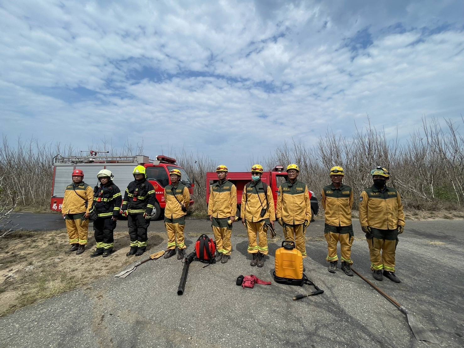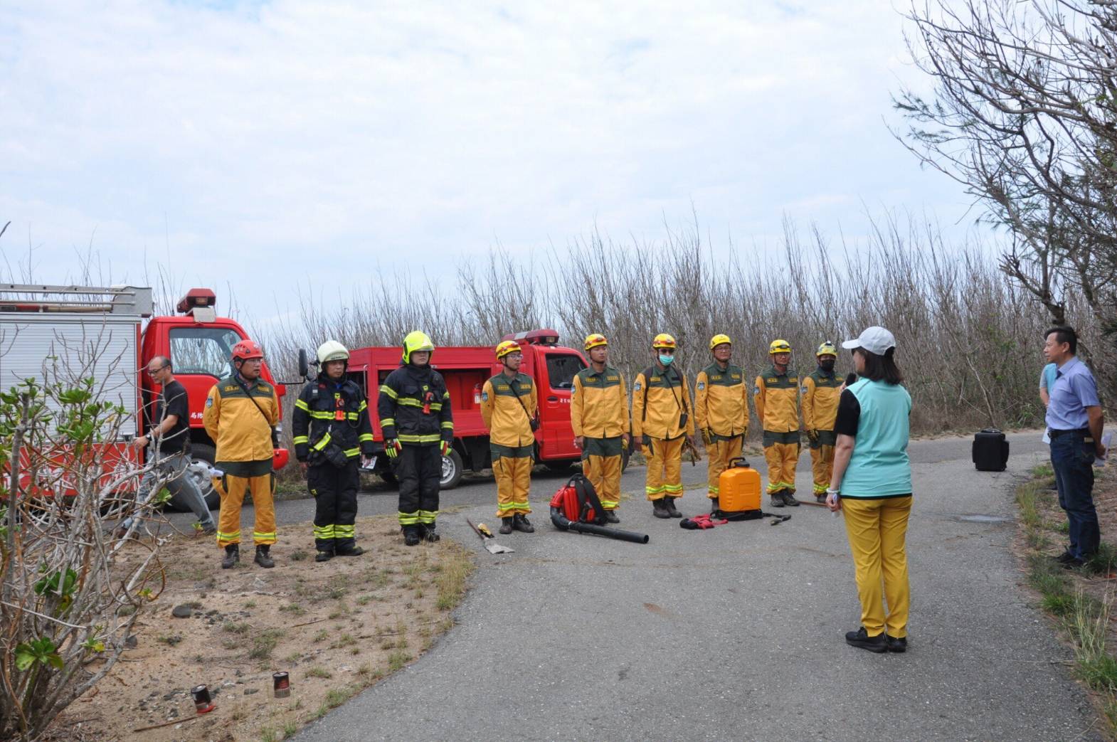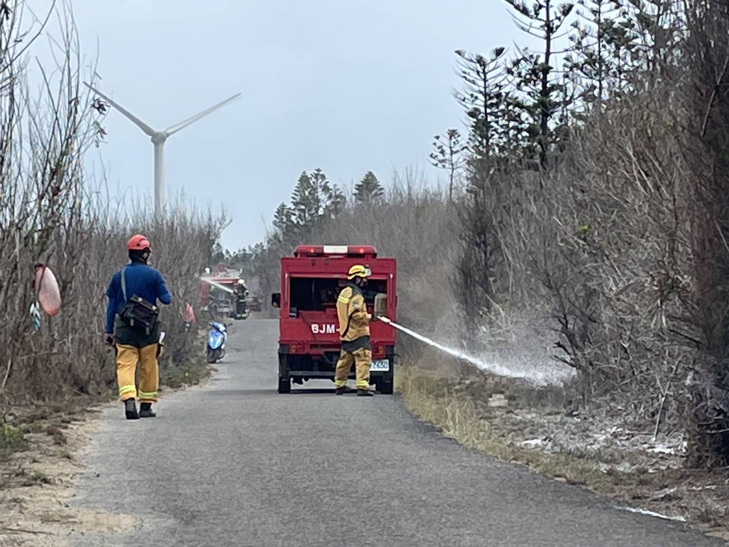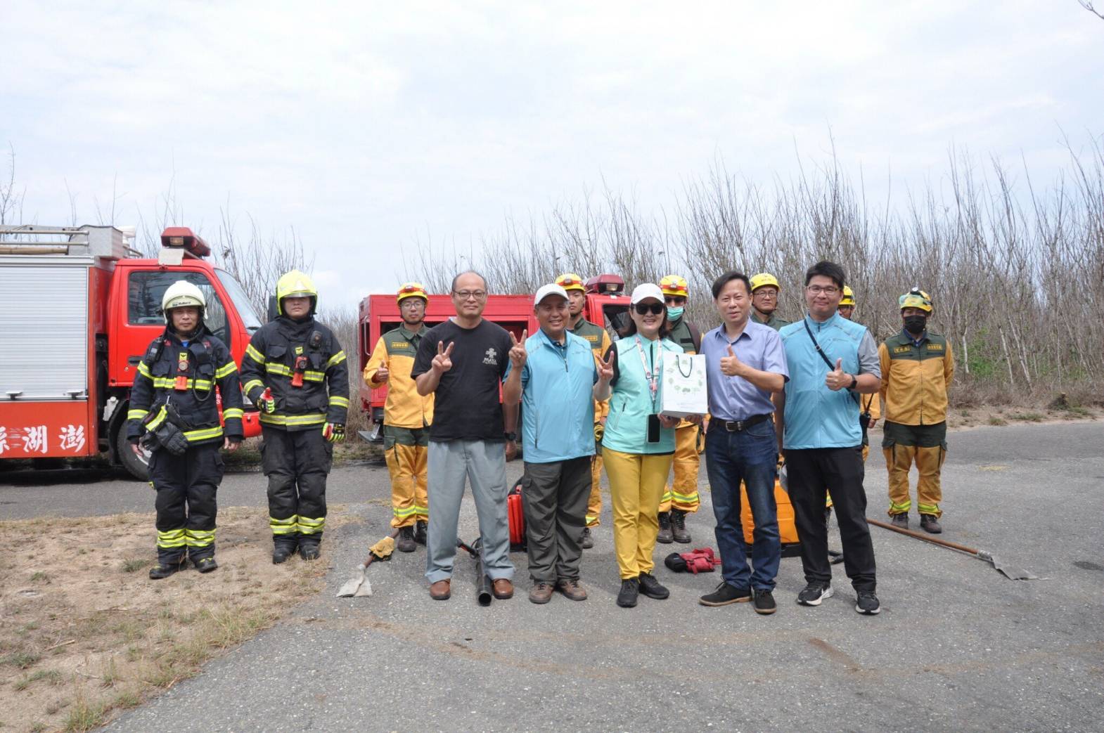 為因應全球氣候變遷所造成的自然災害,林業及自然保育署屏東分署於113年3月31日與澎湖縣政府消防局,首度進行森林火災聯合演練工作,提升離島發生森林火災的應變能力。 澎湖地區計有20號保安林(面積529公頃),本次演訓選在龍門村第2903號保安林,模擬森林護管員發現森林火災後,立即通報當地消防單位並聯繫屏東分署,動員機動救火隊及國家森林消防車隊以船運至澎湖集結,並在第二階段與澎湖縣政府消防單位共同合作搶救森林火災。 透過此次演練,屏東分署不僅將小型易穿梭在林間作業道,機動性強的國家森林消防車,首次船運至離島的作業與澎湖縣政府消防局培養合作默契。 澎湖縣政府消防局表示,本次首次合作模式,看到屏東分署不同的救火機具設備讓人耳目一新,可以加強彼此合作交流的機會,確實提升災害搶救統合作業模式及應變能力,進而增強相互支援救災量能,為未來森林火災通報及聯合救災模式奠定良好基礎,另屏東分署長楊瑞芬表示,除了首度和縣府消防局建立了聯繫平台及合作模式外,日後可以擴大邀請空勤隊相關單位一同加入立體空間的演練行列,提升救火機具及人員的運補及救火效能。 因接下來的清明連假將屆,林業保育署屏東分署與澎湖縣政府消防局共同呼籲於清明掃墓時務必確實遵守「緬懷祖先也要注意安全,清明掃墓不用火」以及清明掃墓不用火:除草不用火(攜回丟棄)、紙錢不燃燒(放集中燃燒處或以功代金)、爆竹不燃放、菸蒂不亂丟及垃圾要帶走,若發現森林火災,請立即撥打119或0800-000930(您您您,救山林)或0800-057930(您我齊救山林),共同防範森林火災,保護澎湖離島寶貴的森林資源。