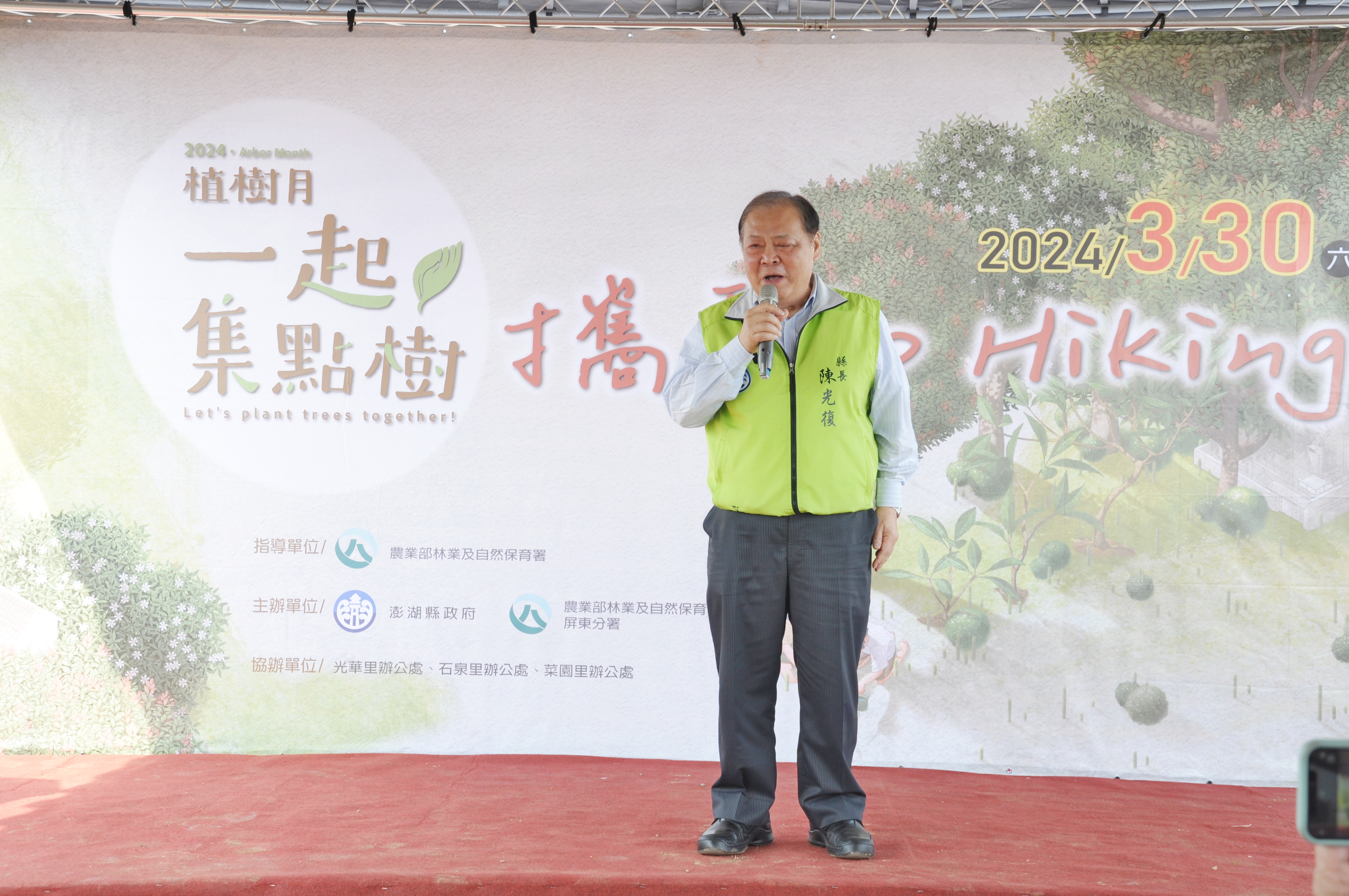 澎湖縣政府、林業及自然保育署屏東分署30日在犀山公園舉辦「一起集點樹 攜手Go Hiking!」澎湖區域植樹活動,現場300多位民眾一起種下羅漢松等近800株林木,以實際行動為澎湖增加0.51公頃的綠地。透過植樹活動,除了達到剷除外來入侵種銀合歡的目的,更能結合大家共同集點樹的概念,透過小面積的環境綠化,累積成線或面的生物棲地效果,健全生態系的完整性和連結性。 澎湖縣長陳光復指出,今年植樹節場地面積雖然不大,但周邊緊鄰光華、菜園、石泉三里,附近也有優良的健行場地,以前這塊土地長滿銀合歡,讓民眾難以親近,與林業及自然保育署合作後,這塊土地未來得以成為將來民眾休憩的場地之一,希望藉由這次的造林活動作為示範點,讓大家體會綠化的重要性,期許未來成林後能提供鄉親體驗自然、「攜手Go Hiking!」的好去處。 澎湖縣議長陳毓仁說,今年的植樹活動結合健行活動,不僅對環境好、對身體也好,希望大家以後多種樹、多運動,讓身體和地球都更健康。 林業及自然保育署屏東分署分署長楊瑞芬則表示,今天的植樹場地,是公私共同努力的成果,且林業及自然保育署、澎湖縣政府攜手造林已超過30年,共完成2,260公頃、約占澎湖面積的18%。在樹種選擇上,依社區需求,選擇具紅色果實的羅漢松、具綠黃紅色褐四色的台灣欒樹,具有紅色新葉的山枇杷、常見於風衝地帶的山欖、果實像鈕扣的銀紐樹、披有銀白色絨毛的白水木,都是適合在澎湖種植的樹種。雖然植樹活動只是一天的工作,但護樹是一輩子的事情,希望民眾來到這個場域散步、運動、休閒之餘,也能幫忙照顧所種下的林木,一起為愛護地球環境而努力。 行政院南部聯合服務中心陳慧玲副執行長說,透過多年的植樹活動,已把植樹文化教育意涵慢慢植入民眾及社區,大家不僅要了解怎樣種樹,還要了解種樹的意義,成為愛護自然的保育種子,將自然保育的觀念散佈到每個角落,同時與社區民眾建立夥伴關係,共同營造社區造林的新風貌,南部聯合服務中心未來也會持續與各機關共同努力造林工作,讓澎湖的生活品質更好。 當天除了植樹活動以外,現場並準備白水木、小葉南洋杉、山欖、欖李、龍柏、迷迭香、紫嬌花、朱槿、銀葉鈕扣樹,共1,800株的樹苗送給參加植樹的民眾。希望大家能「一起集點樹」,促進生態環境永續發展,同時落實透過行動實踐「蒙特婁全球生物多樣性框架 23 項行動目標」第6項「外來入侵種管理」、第12項「都市藍綠帶及連通」,及「聯合國 17 項永續發展目標(SDGs)」目標15「保育陸域生態」,讓人類與自然能和諧共生。
