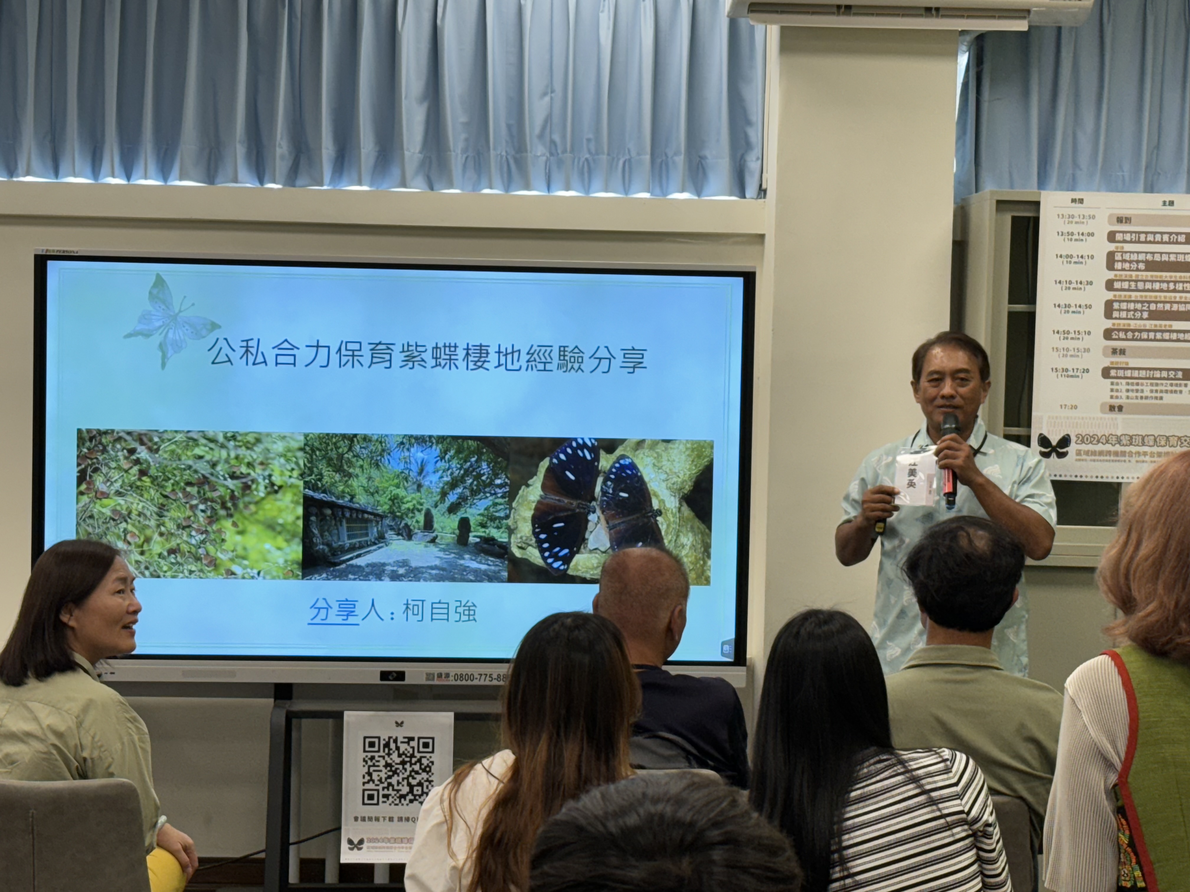 林業保育署屏東分署轄管國土生態綠網的七條保育軸帶,各軸帶內有小尺度的重點推動區域,以實現國土綠網計畫的目標。本次紫班蝶保育交流平台會議延續了111年12月在六龜甲仙淺山森林保育軸帶舉辦的交流會,由公私部門合作討論形塑未來願景後,於今年7月10日則串聯包括高屏溪下游流域、屏東沿山公路農地到恆春半島海岸林保育軸帶等蝶谷重點推動區域,以深化對紫班蝶保育的共識。 林業保育署屏東分署邀集高雄區農業改良場、茂林國家風景區管理處、高雄市政府水利局、墾丁國家公園管理處,台電核三廠、屏東縣來義鄉公所、春日鄉公所、瑪家鄉公所、台灣師範大學徐堉峰教授、台灣紫斑蝶生態保育協會理事廖金山、江山谷江美英及柯自強、詹家龍導演、美濃愛鄉協進會、十八羅漢山自然人文協會及周邊社區等20個公私部門約40人,於屏東縣來義高中舉辦紫斑蝶保育交流平台會,聚焦於探討推動紫斑蝶棲地保育工作。 會議由台灣師範大學徐堉峰教授開場,分享蝴蝶生態與棲地多樣性,他深入介紹紫斑蝶的生態特性及棲地保育的重要性,並探討了棲地破壞對其族群的影響。隨後,台灣紫斑蝶生態保育協會廖金山老師分享了茂林紫蝶幽谷的研究及保育經驗,介紹了紫蝶棲地解說員的培訓與教育訓練、誘蝶植物物候調查、綠保標章芒果的自然資源協同經營模式,並完成五套教案做為學校的生態教育參考,融入住戶門牌標誌。來自江山谷的柯自強分享了紫蝶棲地的實際經驗,播放江爸以歌唱對紫蝶的心意,並分享紫蝶棲地影片的美與重要性。目前江山谷仍持續進行紫蝶保育及解說員的訓練,以發展生態旅遊。 在議題討論降低蝶谷工程施作之環境影響部分,農村水保署台南分署請求協助蝶谷圖資及蜜源植物名錄,屏東分署表示各機關生態資源調查資料已放置在TBIA生態資源調查資料庫內供參考。高雄市政府水利局亦由其委託的剴盛顧問公司辦姿沙里沙里道路旁野溪治理工程初設計案,向與會單位分享其設計與發包版,已依生態輔導意見爲確保紫斑蝶的棲地不被影響作了迴避縮小減輕補償的調整。墾管處則委託詹家龍導演調查並於台電核三廠設置防護網,引導紫蝶飛行軌道,以降低蝶道路殺。在棲地營造、保育與環境教育、生態旅遊推廣部分,屏東縣來義鄉公所推動環境教育,對鄉內二峰圳部落進行教育訓練,施行永續設計的水土保持工法及手作步道,建立蝶類友善環境,並種植蜜源植物推廣生態旅遊。美濃愛鄉協進會分享了認養雙溪熱帶樹木園的經驗,並與屏東分署合作推動公私協力平台,辦理環境教育活動及林下經濟養蜂,於褐根病樹木移除區栽植蜜源植物,讓生態旅遊遊客深度了解。在淺山友善耕作推廣部分,高雄區農改場侯秉賦博士分享了生態友善農法技術,於試驗田區建立生態池,果樹區草生栽培,設置蜂巢箱、蝙蝠箱及棲架,觀察鳥類、蜂等,並輔導茂林芒果友善栽培,培育台灣油芒及蜜源植物,增加田間導覽等生態旅遊。各個分享都讓與會的夥伴對公私部門所做的努力感到感動與佩服 屏東分署長楊瑞芬表示,綠網最重要是建立人網,這場交流會不僅加深了與會者對紫班蝶保育工作的理解,也促進了公私部門間的深入合作和知識分享共同促進紫班蝶及其棲地的保護,貢獻更多具體的想法和實踐經驗。