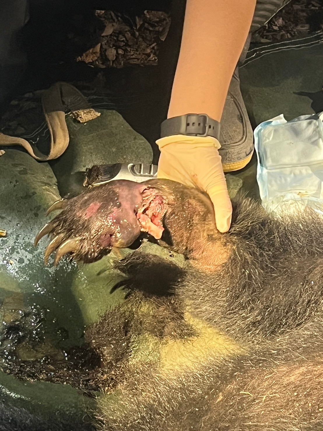 林業及自然保育署屏東分署9日下午近4點接獲屏東縣霧臺鄉大武村麥庸正村長通報,大武社區發展協會執行生態服務給付的棲地巡護時,在大武部落旁海拔僅513公尺的原住民保留地發現有臺灣黑熊受困套索,分署立即會同屏東科技大學野生動物收容中心並動員20餘人至現場與族人合力救援,在現場麻醉檢傷後,連夜將黑熊後送並於隔日清晨12點抵達屏科大野生動物收容中心。 經詳細檢查,受困黑熊是亞成體母熊,體重約20公斤、站立高度約1米,右前掌因受困套索導致掌股斷裂,但目前狀況穩定。 屏東分署表示,此次黑熊通報救援是高屏地區首例,高屏山區原本即有黑熊分布,近年更逐漸接近淺山聚落。由於山村農民或族人為防範獸害或傳統狩獵會在農地或保留地布放套索,以往雖有黑熊受困套索傳聞,但可能因山村民眾多誤解使用套索是違法行為,不敢聲張,因而從未接獲通報,也可能有黑熊因此無辜喪命。林業自然保育署因而積極宣導「誤捕黑熊及時通報並協助救援即可免責」的正確觀念,並且與山村社區合作推動黑熊生態服務給付,由居民自主巡護棲地與監測生態,此一首例通報實具有里程碑的意義。 屏東分署進一步說明,參與此次救援的除了屏東分署潮州工作站、野聲環境生態有限公司及國立屏東科技大學保育類野生動物收容中心人員外,之所以能快速完成救援的關鍵,是大武部落參與黑熊生態給付自主巡護隊員在發現第一時間就立即撥打電話通報分署,而且還提供現場影像,讓救援團隊得以評估現場環境及規劃動線;此外,隊員也同時邀集部落族人到場協助救援工作,因此除了6名大武部落族人外,投入救援的還包括霧台鄉長巴正義與同仁等公私部門總共20餘人。 針對本次通報及協助救援的族人,屏東分署將會頒發獎勵金給予鼓勵。屏東分署今年已至轄內山村部落辦理33場次臺灣黑熊生態服務給付說明會,宣導生態服務給付計畫、誤捕黑熊通報免責等政策,鼓勵山村居民參與黑熊保育。 屏東分署同時再次呼籲,在地部落及農友有傳統狩獵或防範獸害的需求與權利,但為免誤捕非標的物種如黑熊等,因此設計改良式獵具提供有需要的山村居民免費換領,以淘汰市售的大口徑制式套索,並歡迎更多社區部落加入臺灣黑熊生態服務給付行列。 民眾如發現野生動物受困,請即刻撥打地方政府服務專線1999、林業及自然保育署24小時通報專線0800-000-930或屏東分署08-7236941;若不慎誤捕或誤傷保育類野生動物,切勿私自處理,只要立即通報、協助救援就不會被究責。