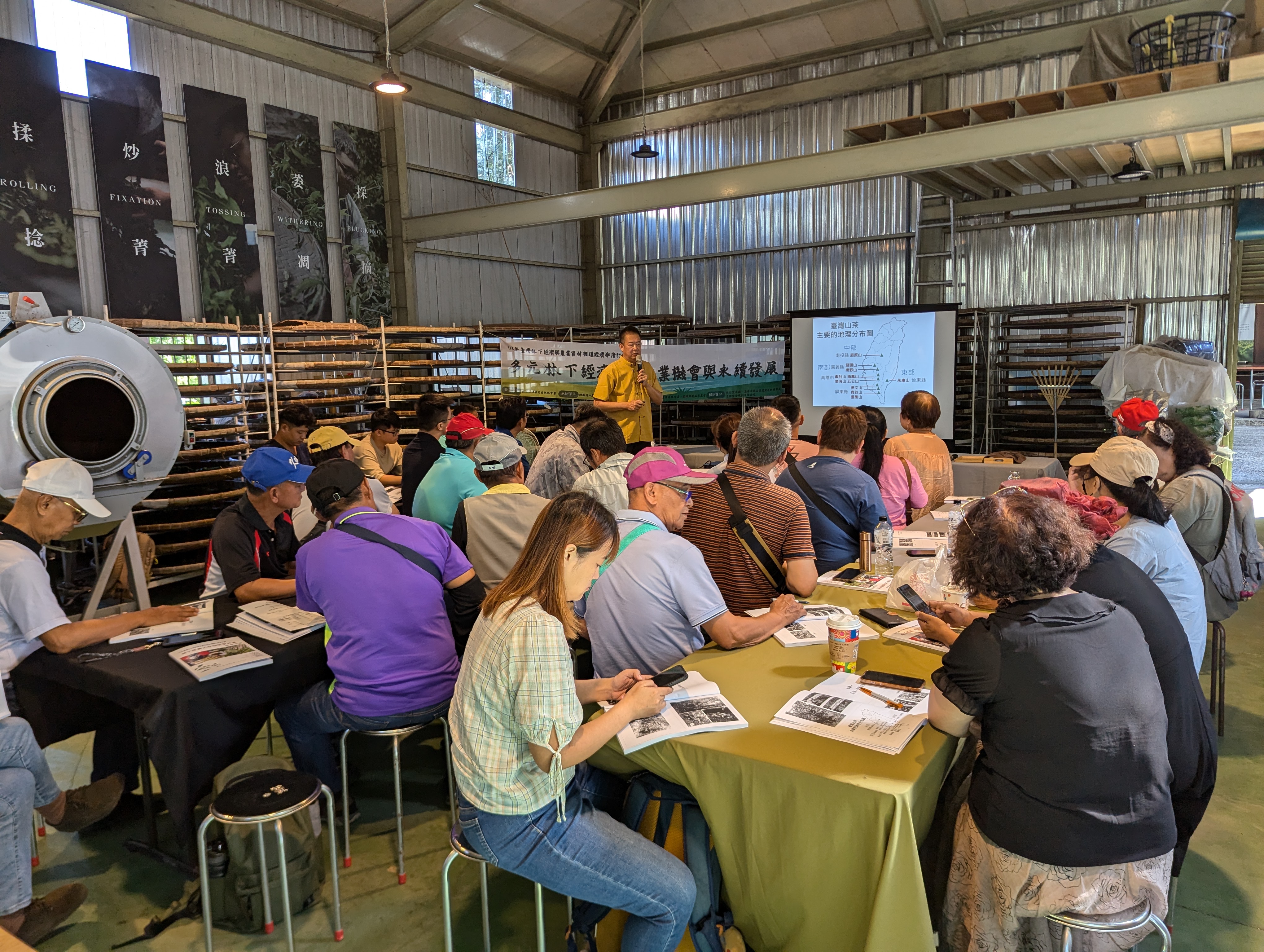 林業保育署於113年10月14及15日委託財團法人農村發展基金會在高雄六龜及茂林地區辦理林下經濟工作坊研習,課程包含臺灣山茶製茶教學、茶席文化體驗、養蜂六級化、金線連栽培等內容,課程師資涵蓋產官學各個領域,藉由不同面向的專業講解,從生產、製造、行銷端帶領參訓學員逐步認識林下經濟產業。 林業保育署自108年公告林下經濟政策,提供林業用地更多元的經營方式,目前開放的項目有林下養蜂、段木香菇及木耳、臺灣金線連、臺灣山茶、天仙果、馬藍計6種。近年來林業保育署屏東分署(以下簡稱屏東分署)積極在高屏地區推動林下經濟,目前已有10件租地林農及至少7件私有地林農申請投入經營,放置蜂箱數量計760箱,年產值可達500萬元,種植臺灣山茶計4,669株,總經營面積近11.5公頃,未來產值可期。屏東分署也在六龜工作站建立林下經濟示範場域,讓林農可現地觀摩段木香菇菇寮、臺灣山茶及蜂箱管理的情形,其中臺灣山茶的示範場域也同步於藤枝國家森林遊樂區及那瑪夏曲積山分別種植了720及200株的臺灣山茶,讓林農及到訪遊客皆可以直接瞭解其栽植方式及生長情形。另外屏東分署也委託屏東科技大學推動「國產材森林副產物精油推廣計畫」,共同輔導在地林農9人籌備有限責任高屏地區農林產業生產合作社,持續招募合作社社員中,期能將高經濟價值之森林副產物-精油結合在地特色發展精油產業,創造地方林業新的價值模式,同時也輔導屏東縣牡丹鄉高士社區作為原民部落經營多元化森林產業的示範點,推廣多層次農林混作、家庭農園,並調查記錄重要民族植物,開發地方特色產品,發展部落成為韌性社區。 本次兩日研習參訓學員約80人次,學員與講師互動及回饋相當熱絡,並希望未來有更進一步的進階課程。屏東分署也因應在地部落的期待,依照適合在地發展的品項著手規劃更深入及全面的研習,讓部落能實現林下經濟在地產業六級化。同時也期望藉由林下經濟的推動,林農可以在森林環境發展出多元產業,進而達到永續林業的願景。對林下經濟有興趣的民眾可就近向屏東分署、六龜、旗山、潮州及恆春工作站洽詢相關資訊。