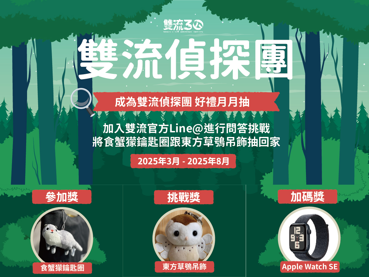 為慶祝雙流國家森林遊樂區成立30週年,林業及自然保育署屏東分署自113年11月起,持續推出「雙流30周年系列育樂活動」。系列活動涵蓋生態教育、手作體驗與登山健行等多元主題,廣受民眾好評。今年暑假更特別規劃限定活動,邀請親子民眾一同走入森林,開啟一場與自然共鳴的夏日探索之旅。 林業及自然保育署屏東分署表示,為鼓勵更多人以輕鬆有趣的方式親近自然,特別設計結合創意與感官體驗的課程,讓參與者親身走進森林、觸摸土地、吸收滿滿的芬多精。暑期限定主打活動有「森林療癒礦物泥染工作坊」及「五感沉浸式步道導覽」兩場活動,活動日期於7月19日(六)、8月3日(六),邀請民眾體驗泥染創作與多感官導覽,感受雙流森林的靜謐與美好。 雙流自然教育中心15周年延續經典課程,自113年8月起持續推出一系列生態體驗課程,延續歷年受歡迎的教學內容。中心自108年成立以來,致力於推動生態保育教育,成為南部親子族群最受歡迎的自然學習據點之一。每年暑假都受好評的「叢林探險隊暑期營隊」,於7月9-11日及7月23-25日辦理2梯次,以「趴溪體驗」與「紅外線自動照相機操作」為主題,帶領學員探索水生物奧秘,並捕捉野生動物的珍貴影像,揭開森林的神秘面紗。雙流自然教育中心自108年成立以來,致力推動生態保育教育,持續連結人與自然,深受親子族群喜愛,成為南部重要的生態學習據點之一。 加入LINE官方帳號抽好禮!活動期間,凡加入雙流國家森林遊樂區LINE官方帳號(@763xbiun),即可獲得最新活動資訊,並有機會參加抽獎,獎項包括:食蟹獴造型鑰匙圈、東方草鴞造型吊飾等精美禮品。此外,在活動截止前,若加入人數突破999人,將加碼抽出Apple Watch SE一組! 更多活動資訊與報名請上: 粉絲專頁:https://www.facebook.com/shuangliou.forest 活動官網:http://www.shuangliu30.com