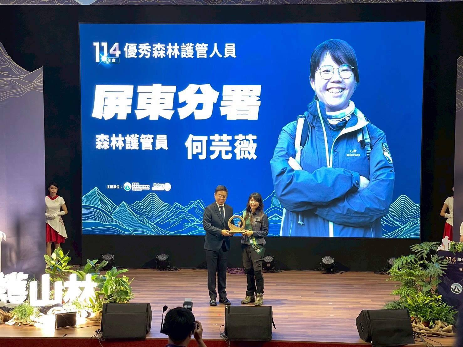 林業及自然保育署昨(20)日舉行年度表揚活動,表彰守護山林的第一線人員。屏東分署今年共有3人獲獎,包括森林護管員何芫薇、李宗憲及國家森林監測志工劉倉任,分別在巡護管理、防火救災與生態監測等領域展現卓越表現,成為守護臺灣森林的重要典範。 科技與專業併行 恆春工作站森林護管員何芫薇,榮獲傑出森林護管員殊榮,負責巡護面積逾1,400公頃,長期投入第一線山林管理工作。她善用無人機空拍與定位技術,運用於防範盜伐、森林火災應變及造林監測,有效提升巡護與管理效率。除日常巡護外,亦參與「向海致敬」計畫,並走入校園推動保育宣導,將森林保護觀念轉化為易於理解的環境教育內容,促進民眾對山林議題的認識與參與,是兼具專業技術與創新思維的斜槓護管員。 守護韌性與協作 旗山工作站森林護管員李宗憲以「溝通專家」與「救災支柱」著稱,獲選優秀森林護管員。長期投入林地管理與防火工作,憑藉扎實的防火訓練,成為分署火場搶救的快打部隊核心。亦成功協調處理多起林地佔用案件,展現良好溝通能力。在社區參與方面,帶領在地居民清除逾500公斤小花蔓澤蘭,並參與草鴞棲地及楠梓仙溪魚類調查,透過實際行動促進在地共同守護山林,落實「守護山林、走入社區」的共生精神。 無私奉獻志工力量不可或缺 國家森林調查監測志工劉倉任,長期投身艱辛的深山特遣任務。他以精湛的植物辨識能力,為森林資源調查提供重要支持;身為志工幹部,他更慷慨分享專業知識,承辦多場研習活動提升團隊素質,是山林監測工作中最堅實的志願力量。 屏東分署表示,森林護管員與監測志工皆是守護臺灣山林的第一線人員,不僅肩負查緝盜伐、預防森林火災、監測生態資源、保育野生動物及協助登山客搜救等重要任務,更以實際行動守護珍貴的自然資源。未來將持續強化科技巡護應用、深化社區參與及志工培力,結合公私協力機制,擴大山林保育能量,讓更多民眾共同參與守護行列,推動臺灣森林資源永續發展。