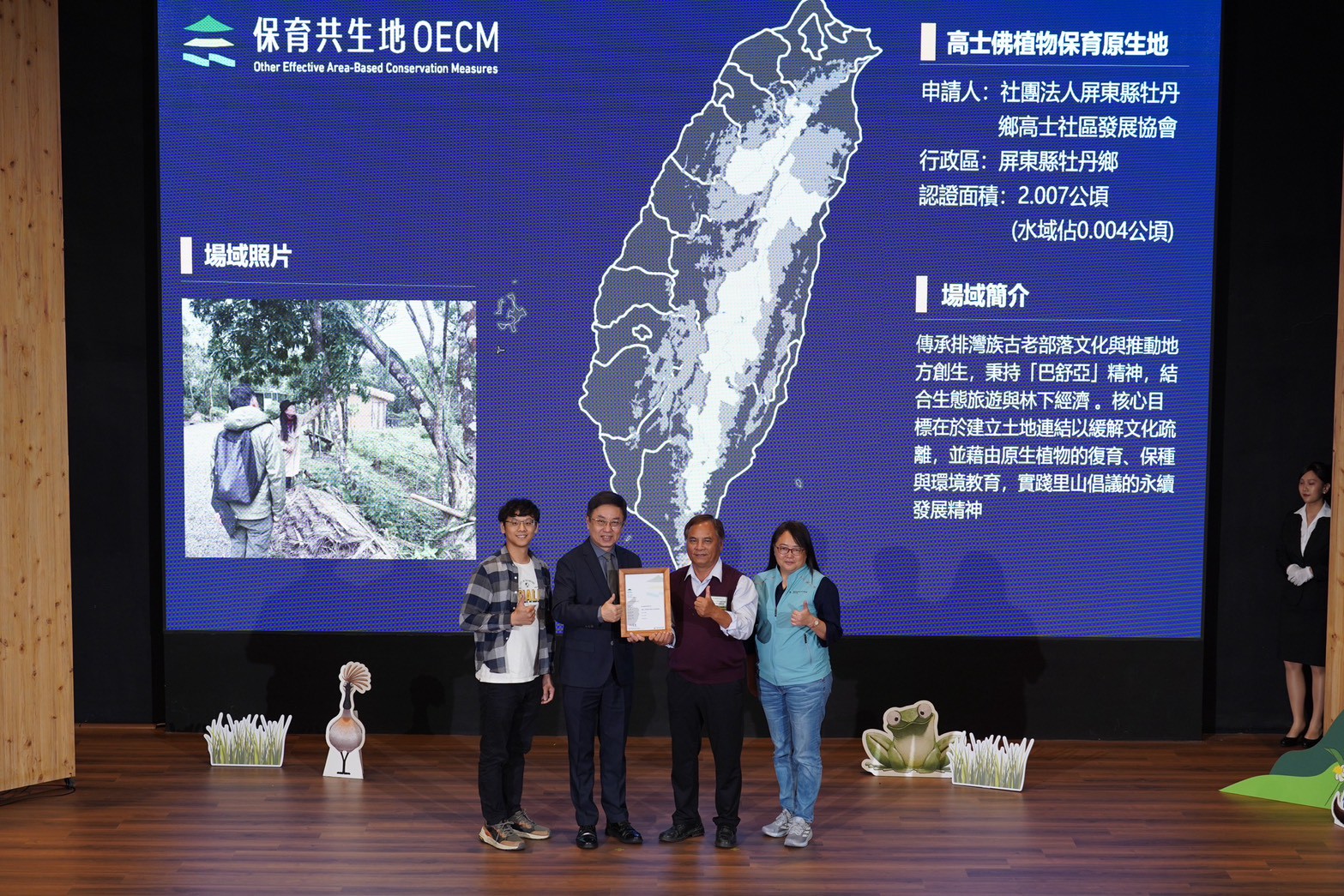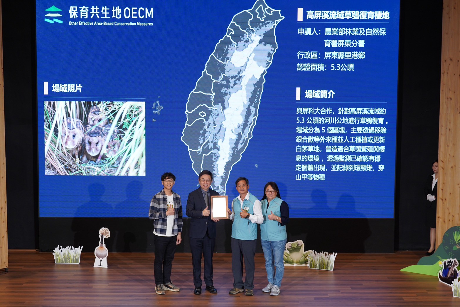農業部林業及自然保育署於今年3 月 25 日辦理首屆「保育共生地(OECMs)」授證暨成果發表會,全國共計 62 個場域獲得認證及3案候選保育共生地。其中,林業保育署屏東分署轄區內包含「高屏溪流域草鴞復育棲地」、「美濃湖水雉復育棲地」、「南方金鑽-十八羅漢山服務區」、「高士佛植物保育原生地」等 4 處榮獲保育共生地認證,以及「多多鳥濕地學校」獲候選保育共生地認證。屏東分署期盼藉此契機,不僅推動在地生物多樣性保育,更呼籲企業將ESG永續發展鏈結保育共生地,共同打造人與自然和諧共生的環境。 林業保育署屏東分署表示此次獲證的 5 個場域,涵蓋了草生地、里山農田及濕地等多樣棲地類型,充分展現各界投入保育的豐碩成果。「高屏溪流域草鴞復育棲地」由屏東分署與水利署第七河川分署跨部會合作,於河川周邊營造廣闊的白茅草生地,為瀕臨絕種野生動物草鴞提供穩定的繁殖與棲息環境;「美濃湖水雉復育棲地」由高雄市政府觀光局與高雄市野鳥學會攜手合作,營造適合水雉繁衍的濕地環境,成功復育族群並推廣環境教育;「南方金鑽-十八羅漢山服務區」由十八羅漢山自然人文協會取得茂林國家風景區管理處同意,結合特殊礫岩地景與淺山森林生態旅遊,在提供遊客解說服務的同時,積極維護淺山生物多樣性;「高士佛植物保育原生地」由牡丹鄉高士社區發展協會推動,於里山環境中復育「高士佛」命名的珍稀受脅植物,結合林下經濟與原民傳統山林知識落實就地保育;「多多鳥濕地學校」則由吳憶萍女士透過公私協力,將災後劣化土地重新打造為蘊含豐富蛙類、鳥類及昆蟲生態的濕地教育園區,以及推廣周邊農田轉型友善環境農法。 保育共生地(OECMs),源自聯合國《生物多樣性公約》締約方大會,是指法定保護區之外的地區,雖然不是保護區,但仍能透過長期且有效的經營管理,達到保育生物多樣性實質成效的區域。2022年「KM-昆明蒙特婁全球生物多樣性框架」制定的「30x30目標」,期許在 2030 年前保護全球至少 30% 的陸地與海洋,保育共生地即是達成此一願景的重要途徑。 林業保育署屏東分署表示,保育共生地的推動不僅是公部門與在地社區的努力,更是企業實踐「ESG(環境、社會與公司治理)」永續發展目標的最佳途徑。透過參與認證,抑或挹注資源支持保育共生地認證場域經營管理,企業可將生物多樣性保育納入價值鏈中,達到落實企業社會責任與生態保育的雙贏目標。 為持續擴大保護區外的網絡串聯,林業及自然保育署預計在今年中旬發布第二波保育共生地受理申請期程。藉此,林業保育署屏東分署呼籲轄區內具備生物多樣性價值的公私有土地管理者、非營利組織、社區部落與企業踴躍提案申請,攜手串聯國土生態綠色網絡,為臺灣的自然生態永續貢獻一份心力。 保育共生地認證方案,請見 https://www.forest.gov.tw/0005013。