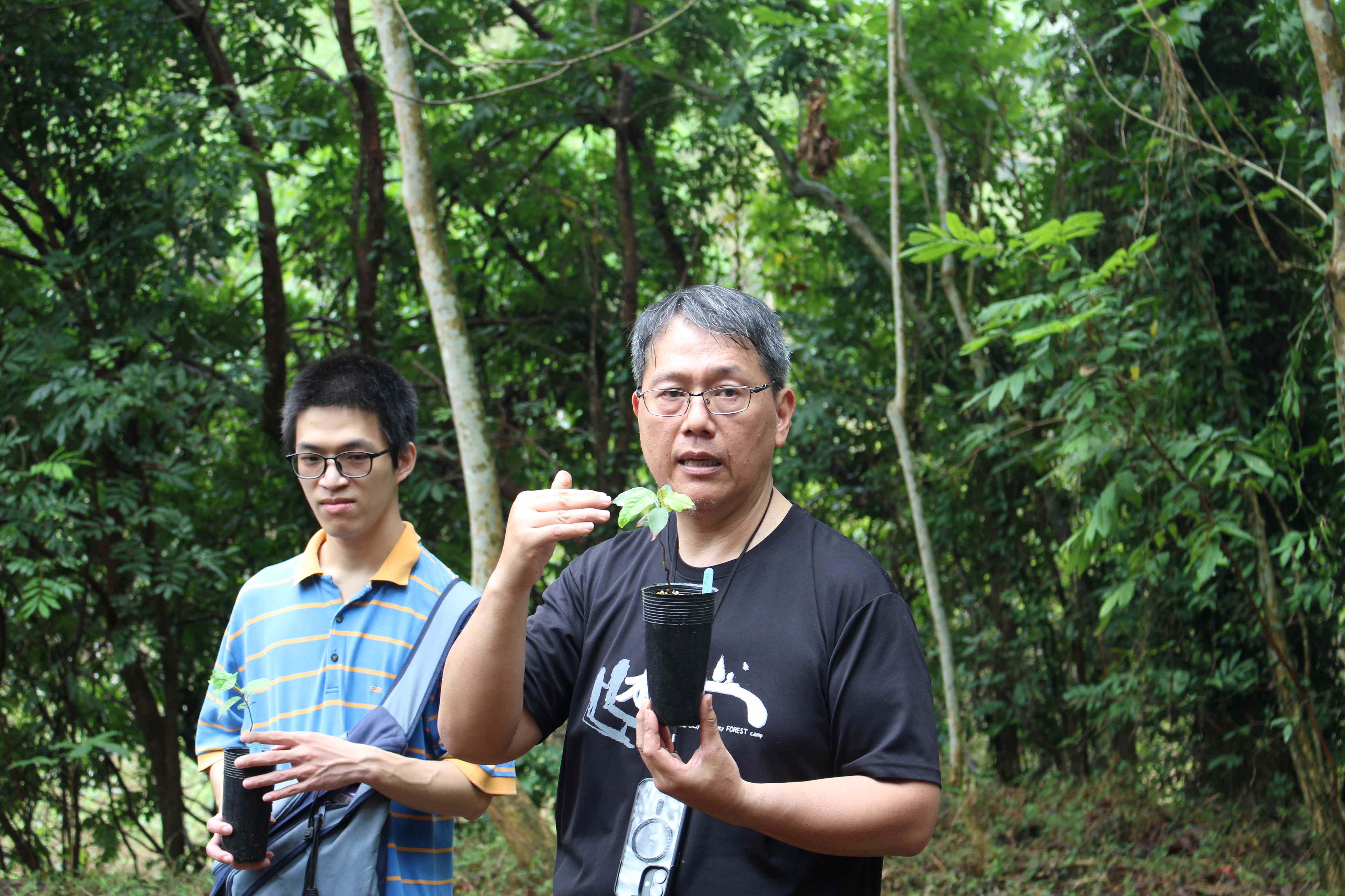 在全球熱帶森林中占有重要地位的「龍腦香科」植物,不僅是重要木材來源,更是強大的碳匯資源。林業及自然保育署屏東分署經營之雙溪熱帶樹木園於1935年設立,當時日本植物學者佐佐木舜一即自熱帶地區引種登吉紅柳桉( Rubroshorea polysperma )至高雄美濃「雙溪熱帶樹木園」栽植。退休教授楊勝任老師指出,該樹種已完全適應臺灣環境,並確認為歸化種,2023年發表於American Journal of Plant Sciences期刊,其在臺灣的適應與更新情形以雙溪熱帶樹木園為起點,歷經90年生長,目前胸徑已達100公分,林下已出現自然更新小苗,展現良好繁衍能力,可為探索固碳潛力之造林樹種。 屏東分署指出,登吉紅柳桉生長快速、木材細緻,極具商用與熱帶雨林環境保育價值。為建立完善的育苗與造林標準作業規範,分署114年起,委託國立嘉義大學林瑞進老師實驗室進行專案研究。研究重點除釐清母樹分布外,更深入探討支撐其在臺生存的微生物系統。 在嘉大研究團隊努力下,純化出對苗木生長具明顯效益的菌株(如SpSTA4、SpSTA6),希望藉了解登吉紅柳桉共生菌根菌,來增加造林成效。今日於高雄市美濃山區旗山事業區第52林班地,舉辦菌根苗造林示範區說明會與教學活動,由林瑞進與楊勝任老師,向美濃在地居民分享登吉紅柳桉的重要性及育苗技術,共計35人參與,合力栽植80株菌根苗。嘉大團隊將持續監測,詳細記錄菌根苗在野地的適應數據,作為未來推廣造林的科學依據。屏東分署表示,未來將透過在地社區參與,讓居民化身為森林守護者,推廣登吉紅柳桉為美濃在地具造林及保育價值的特殊亮點。